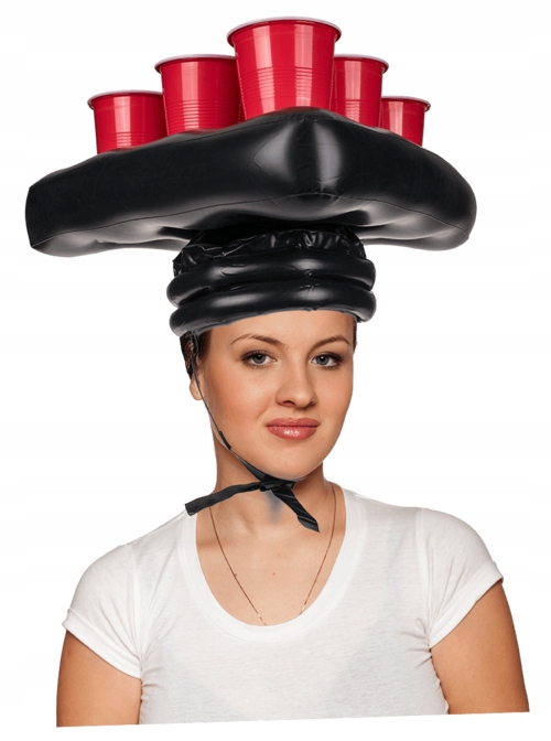 ✅ Beer Pong (також називається Бейрут) це різновид студентської гри з розпиванням пива, у якій гравці кидають м’ячики для пінг-понгу в чашки з пивом, що стоїть з іншого боку столу. Цього разувидання з надувною пивною шапкою.
