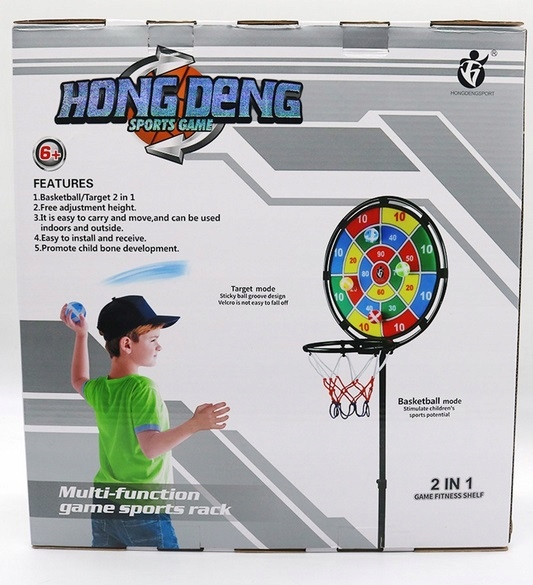 Набір 2 в 1 дозволить вам насолодитися гарною розвагою та стимулюватиме фізичну активність. Під час занять баскетболом підвищується загальна тренованість організму, покращуються рефлекси. Однаково добре працюють руки, ноги, весь тулуб і, перш за все, «голова» дитини. Він зможе легко втілити себе в образи найбільших зірок, відпрацьовуючи штрафні кидки, кидки або просто розважаючись з друзями за своїми правилами. Метаючи в ціль, це покращить концентрацію, точність і координацію рук і очей.