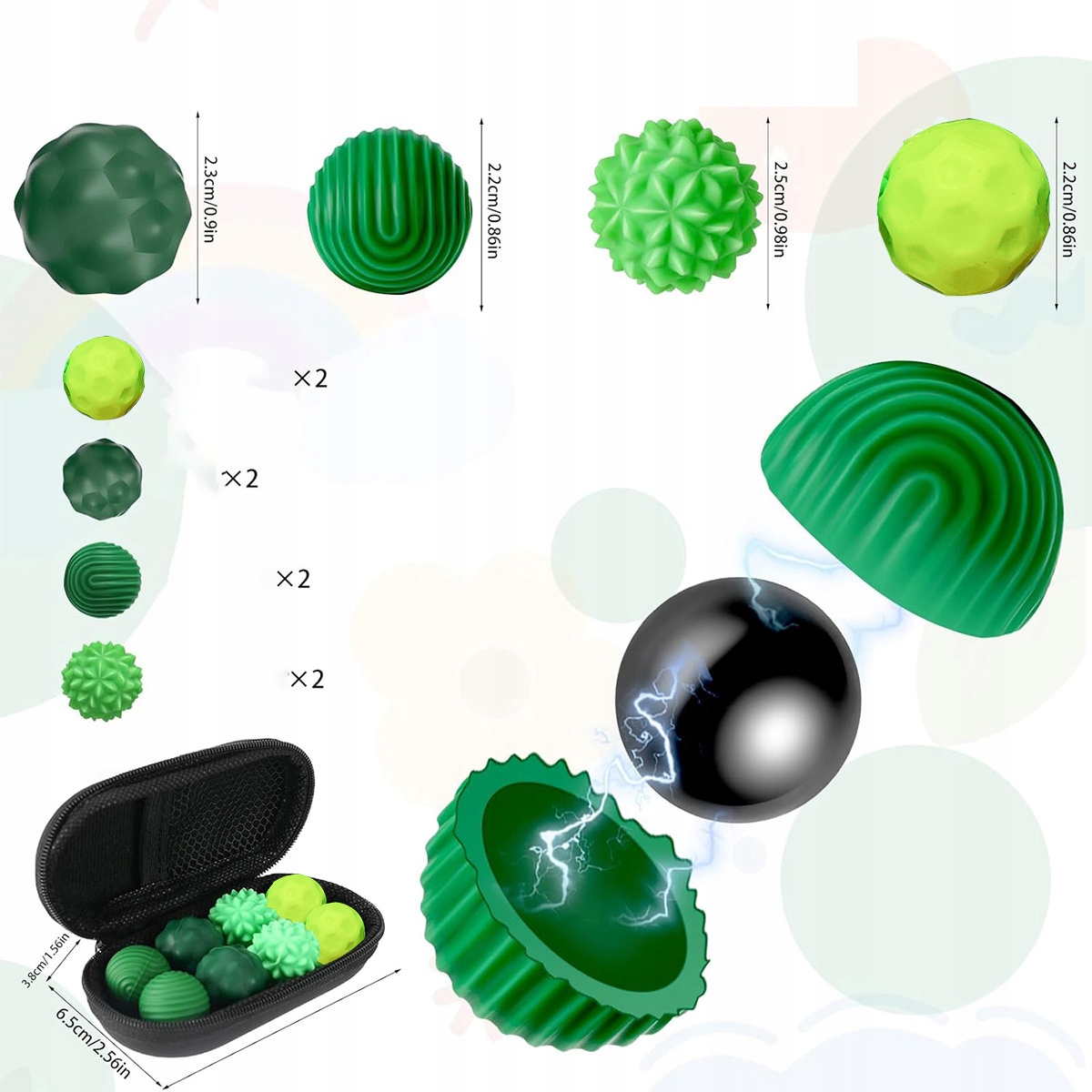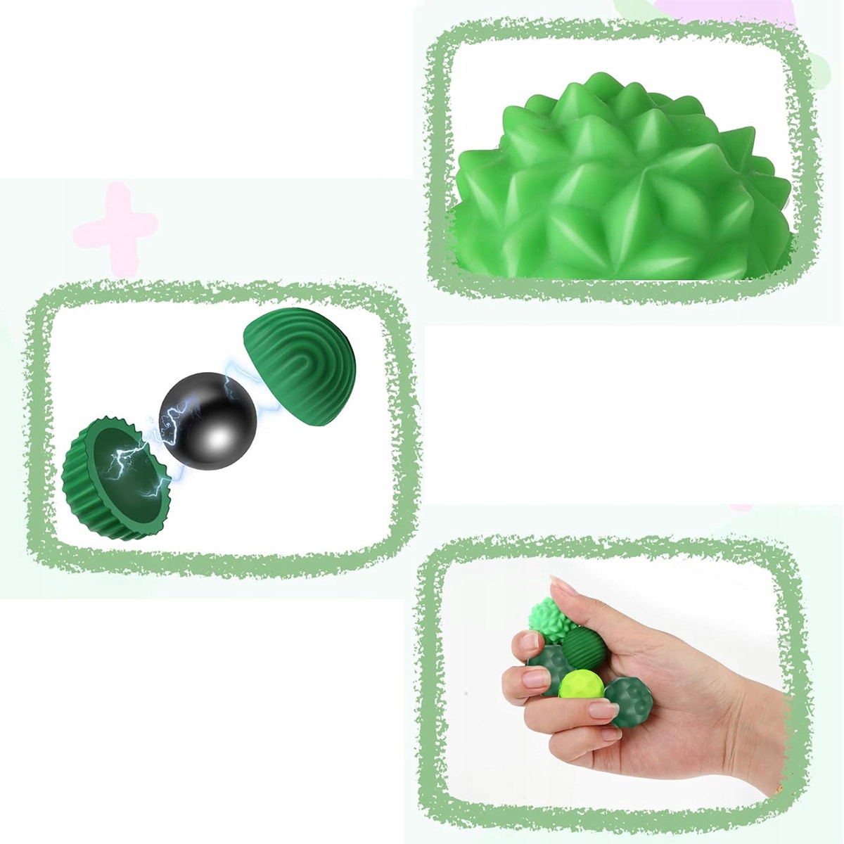 Наші магнітні кульки виготовлені з тактильного силіконового матеріалу, налаштованого з 4 різними опуклими текстурами, щоб задовольнити різні потреби легкої, середньої та інтенсивної стимуляції, забезпечуючи нескінченні тактильні відчуття під час розслабляючий масаж, який знімає дискомфорт і стрес.