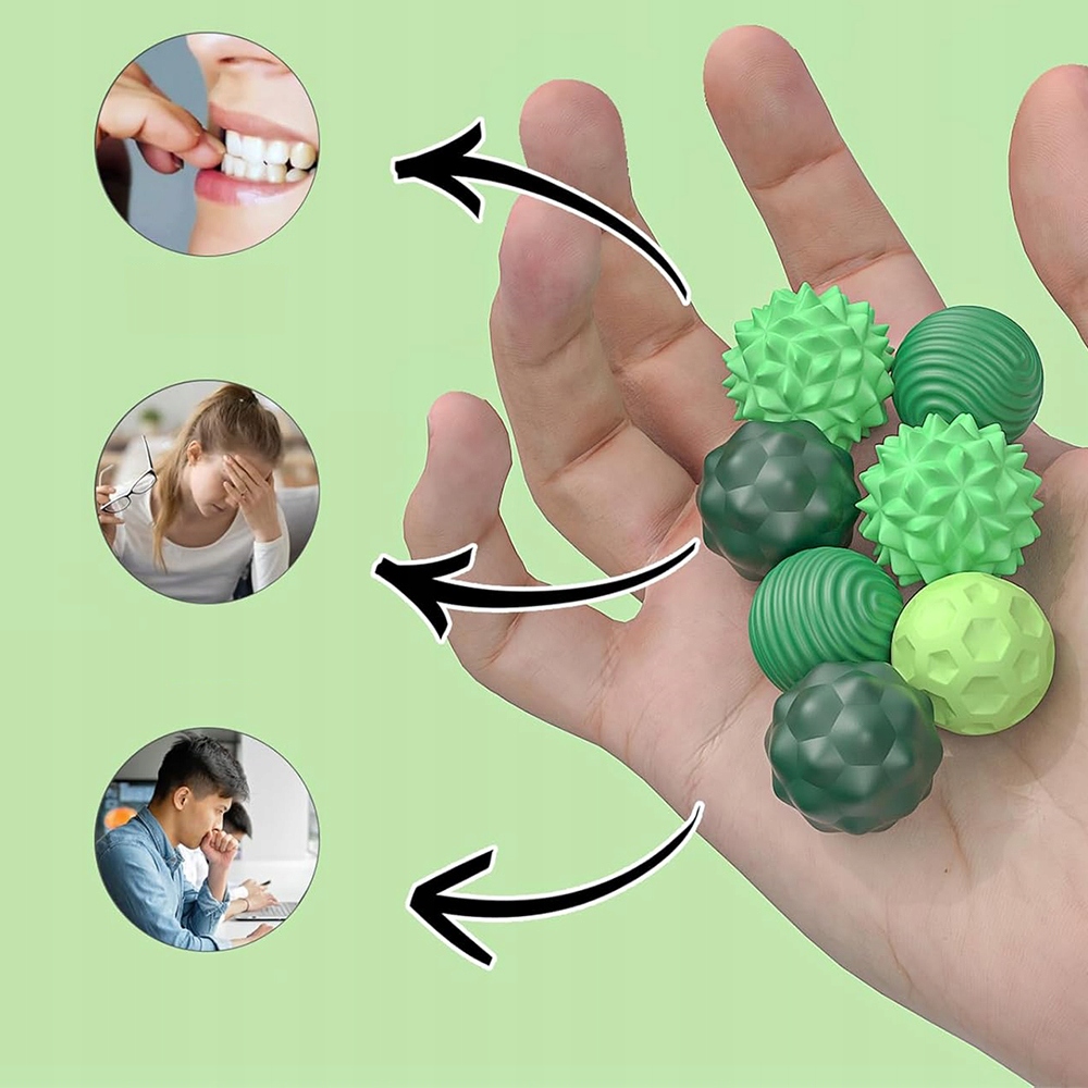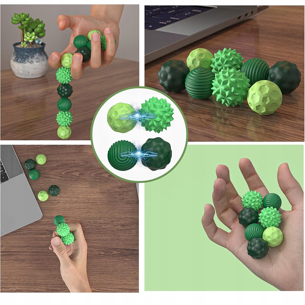 Допомагає зняти стрес, напругу та дратівливість, обмежує шкідливі звички (гризти нігті, тремтіння ногами), працює тихо завдяки силікону та магнітній кульці.