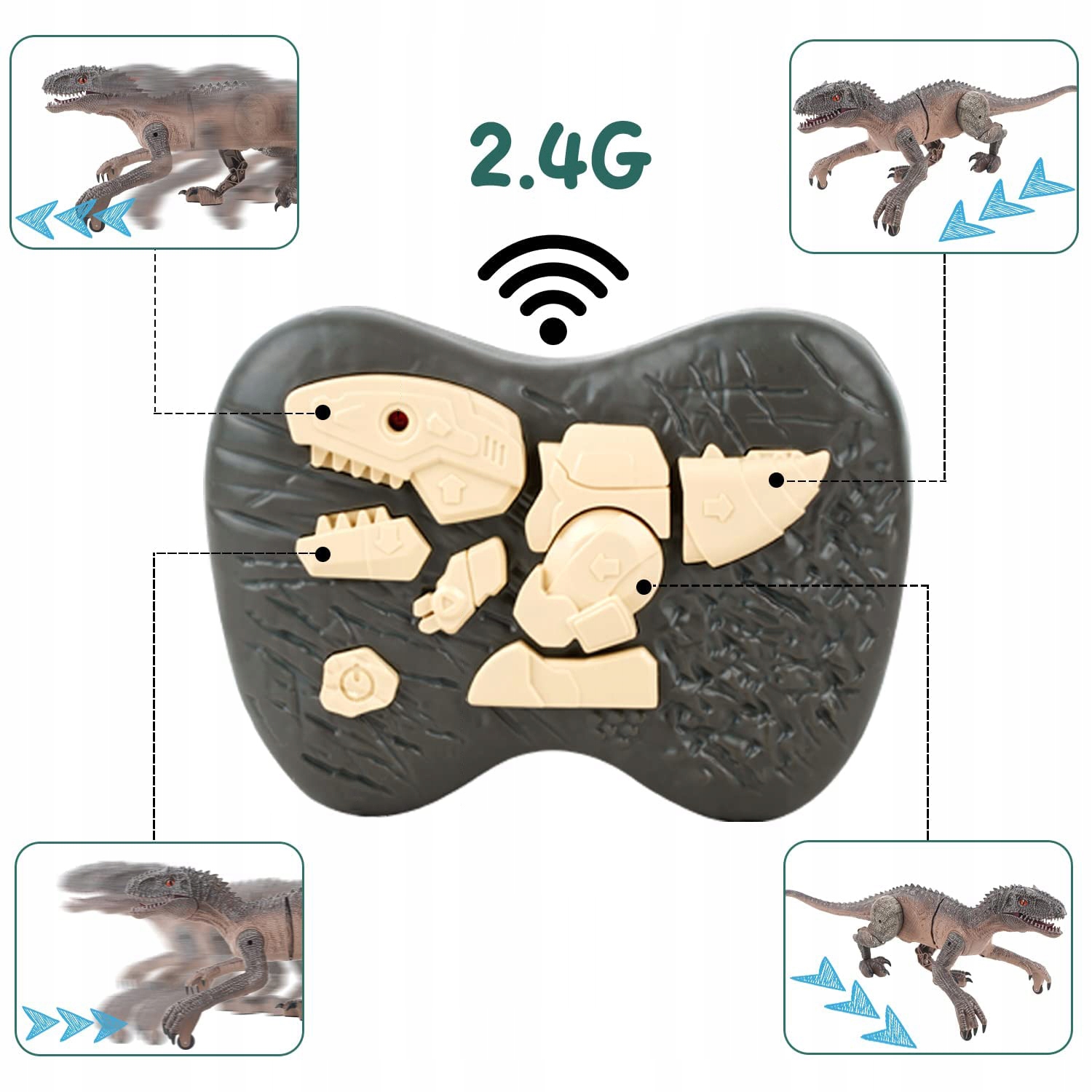 Іграшка-динозавр Велоцираптор із дистанційним керуванням, головою та хвостом, що рухаються, і світлодіодним підсвічуванням