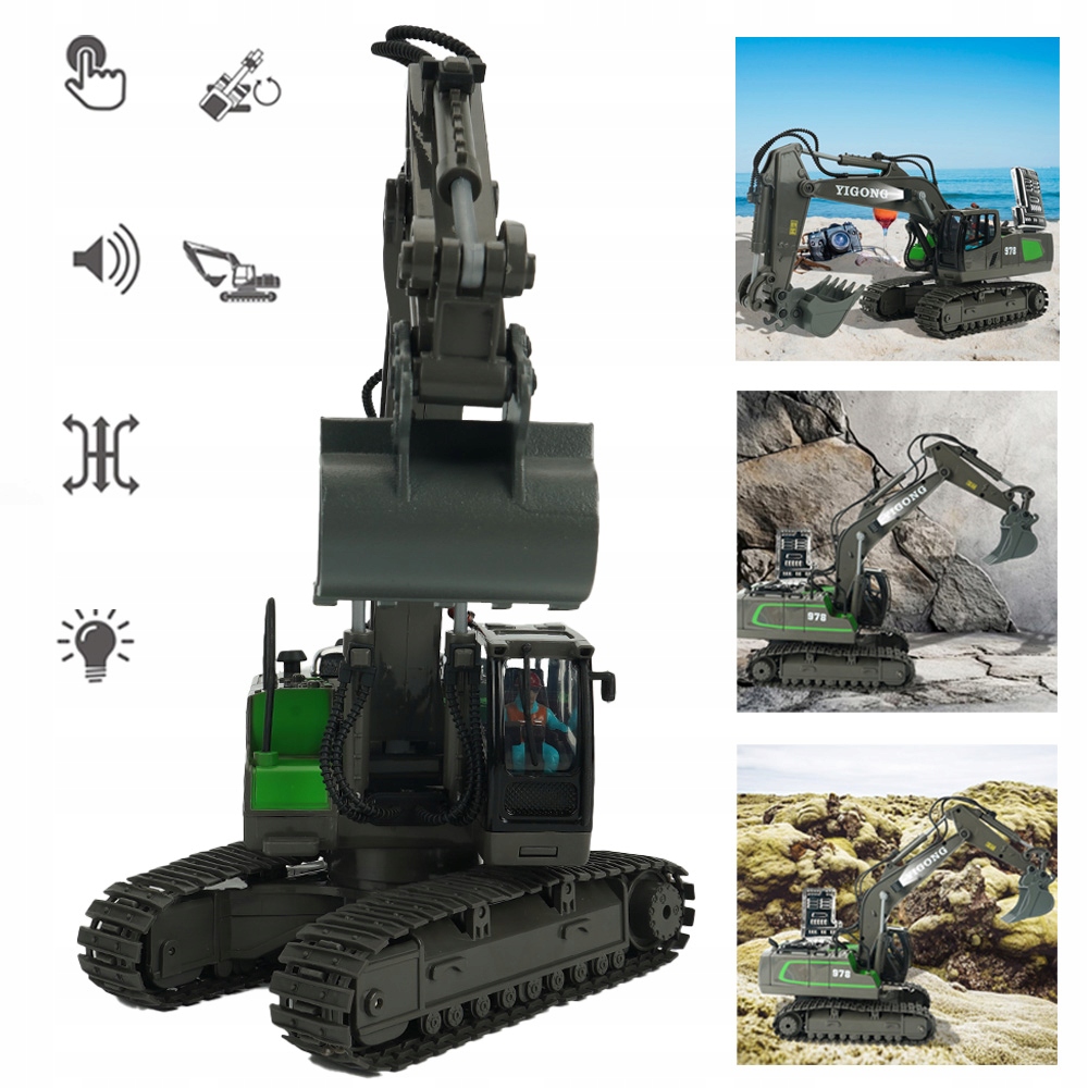 🚦Екскаватор обертається на 680° і може долати перешкоди за допомогою гусениць і рукоятей — на килимі, у пісочниці чи на крутому пляжі.