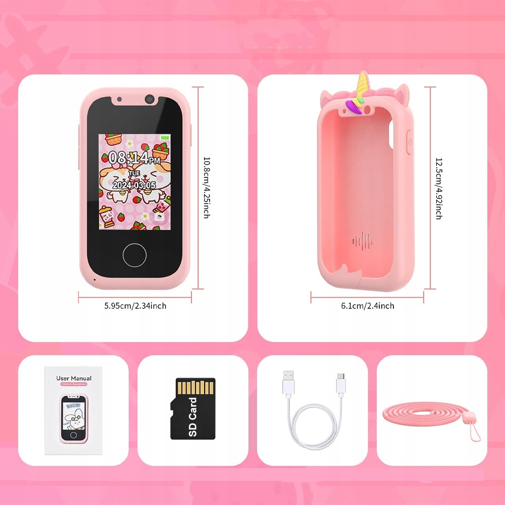 Цей дитячий смартфон оснащений передньою та задньою камерою з 28 чарівними кадрами мультфільмів, 8,0 мегапікселів та 1080p відеофункцій. Діти можуть робити веселі фотографії з родиною, друзями та самостійним часом у будь -якому місці та часу. Завдяки міцному повідку діти можуть записувати спогади в будь -якому місці та часу.