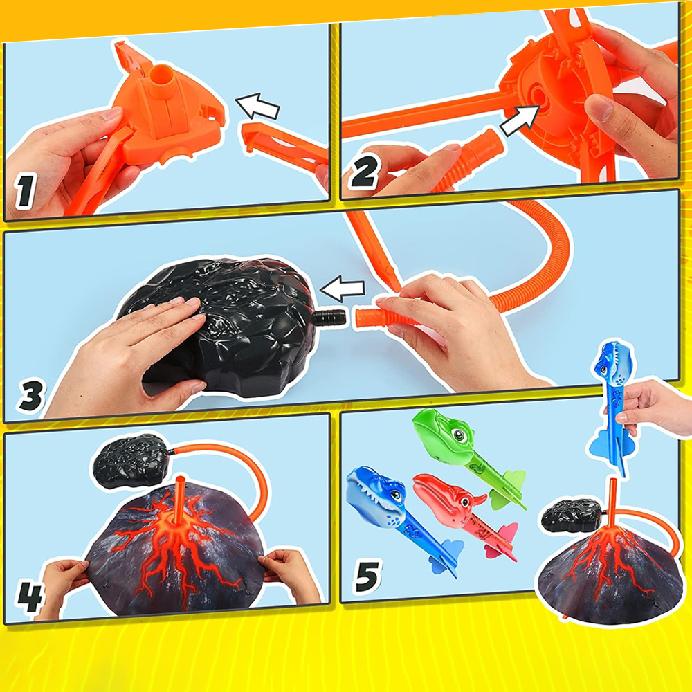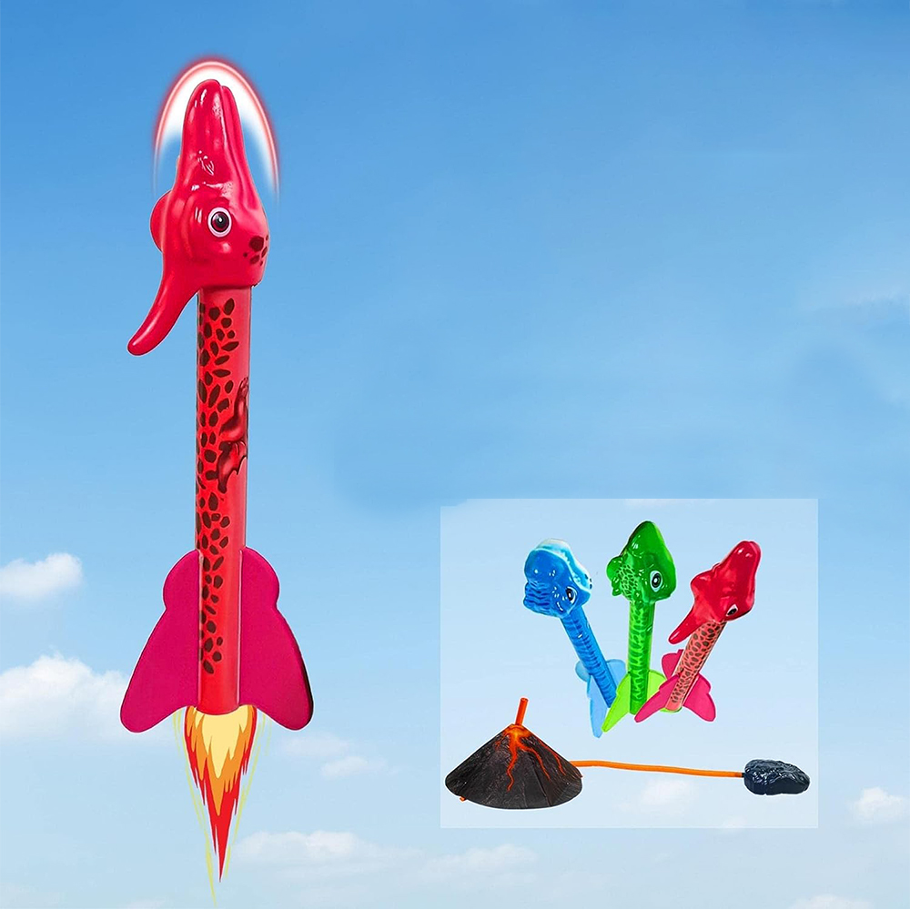 🌋 - 【кумедна ракета з динозавром】: Ця чудова ракета динозавра містить три ракети, укладені динозавром, а також вулканічний стартер та насос для ніг. Бігайте, стрибайте, киньте! Діти просто натискають на ногу на насос, щоб ракета швидко піднімалася в небо. 100% дитячої енергії гарантує, що діти зможуть повністю насолодитися задоволенням.