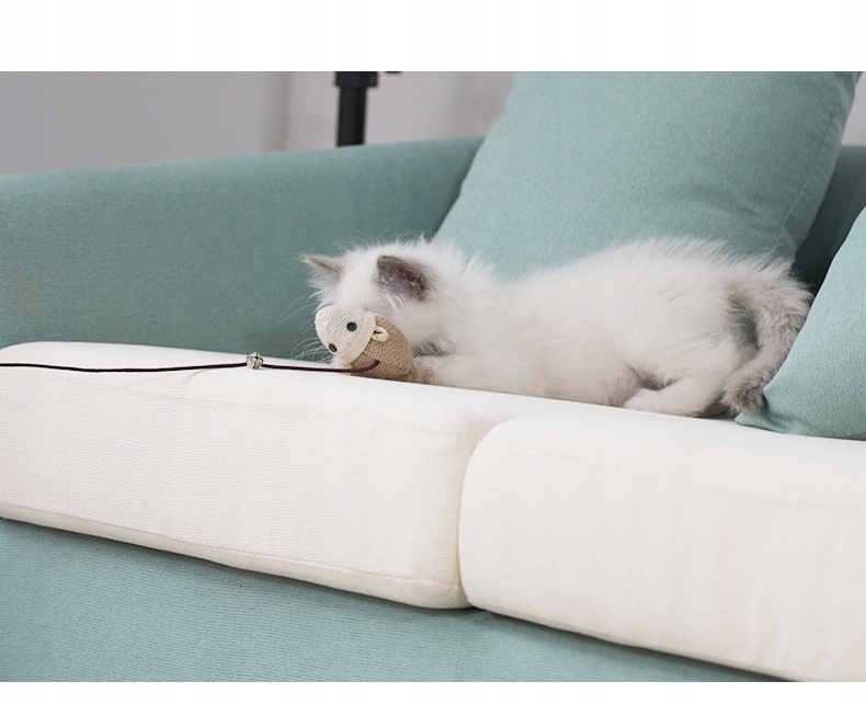 Іграшка має хвіст із пір'я та дзвіночок, що ще більше заохочує кота полювати на мишку.