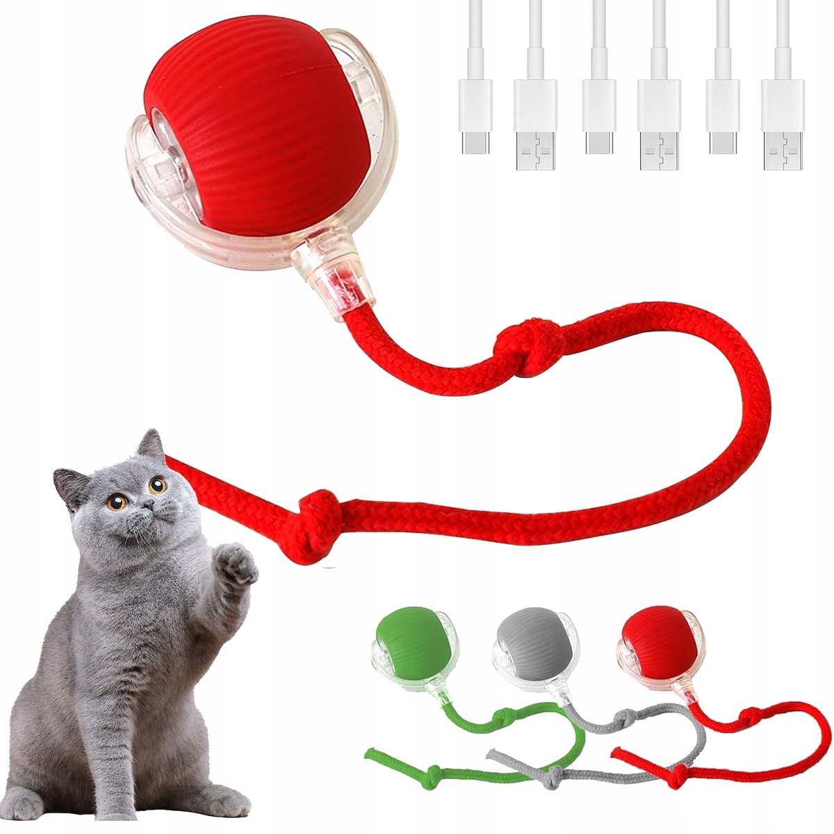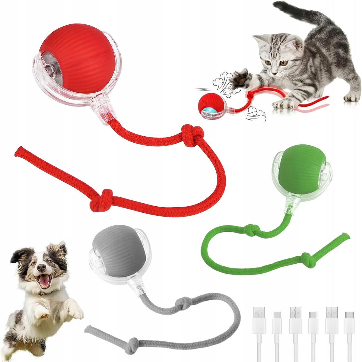 - 3 x Розумний інтерактивний котячий м’яч зі шнурком (червоний+зелений+сірий)