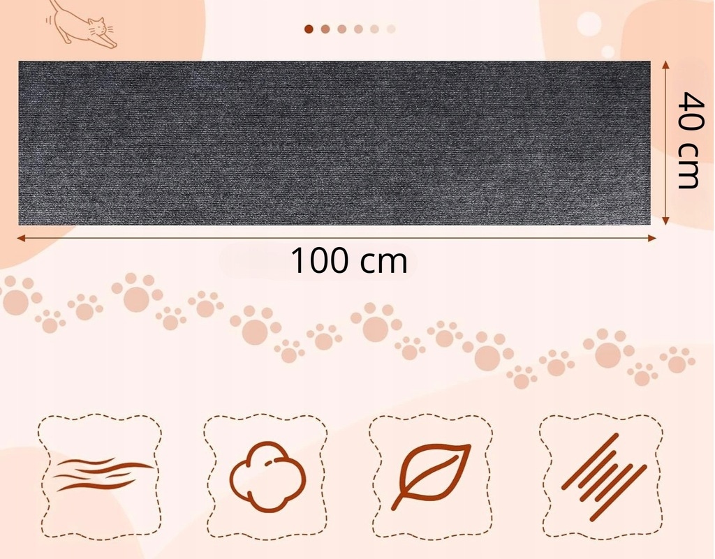 килим можна розрізати у будь -якій формі і використовувати на каті, що подряпин, вежа для кота, полиця для кота, а також на багатьох інших меблів, щоб бути добрим протоковим протокоєм та дряпанням.