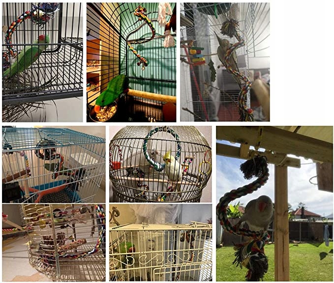 ❀Безпечний і міцний: 100% безпечна для птахів бавовняна мотузка забезпечує м’яку підтримку, має дзвіночок на кінці та міцний металевий кріпильний затискач, який легко кріпиться майже до будь-якої клітки.