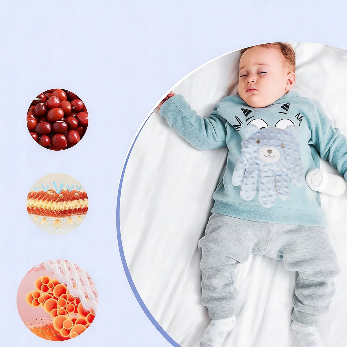 ✅【Запобігання переляку】М’який дизайн, схожий на рукавичку, допомагає запобігти рефлексу злякання немовлят, зменшуючи різкі рухи, які можуть заважати сну. Його ніжна дія забезпечує постійний комфорт протягом усього циклу сну.