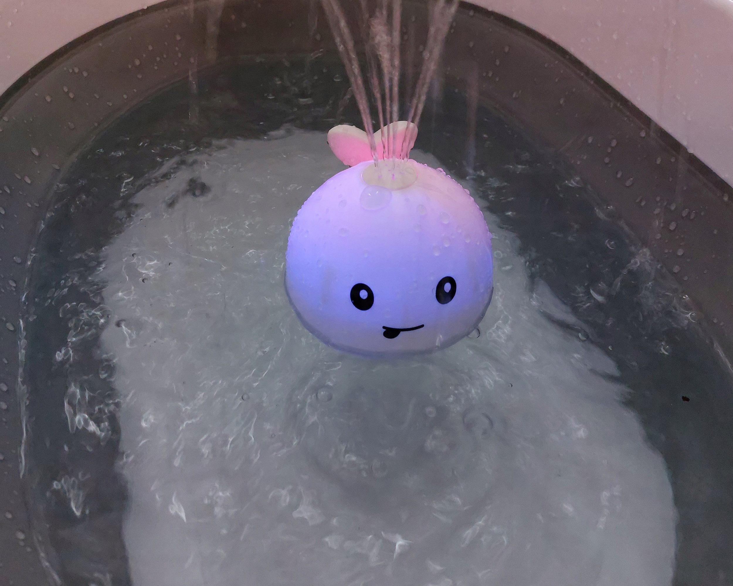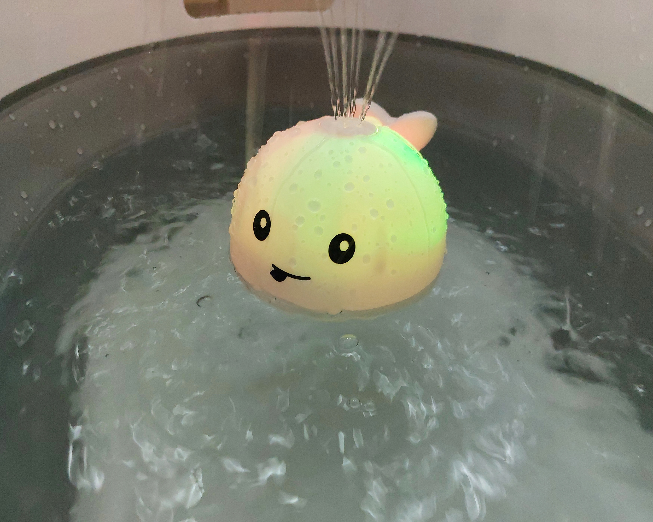 Кит, що світиться, з якого бризкає вода, — ідеальна ідея для оригінальної гри для купання вашої дитини.