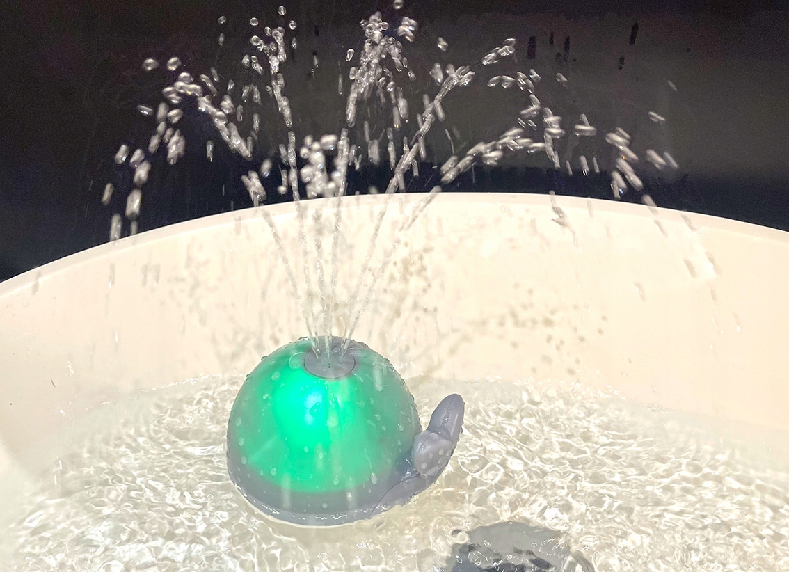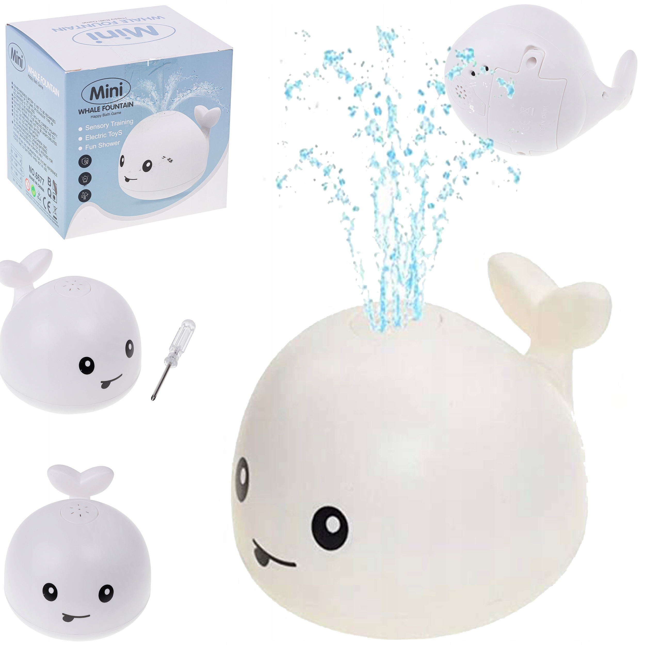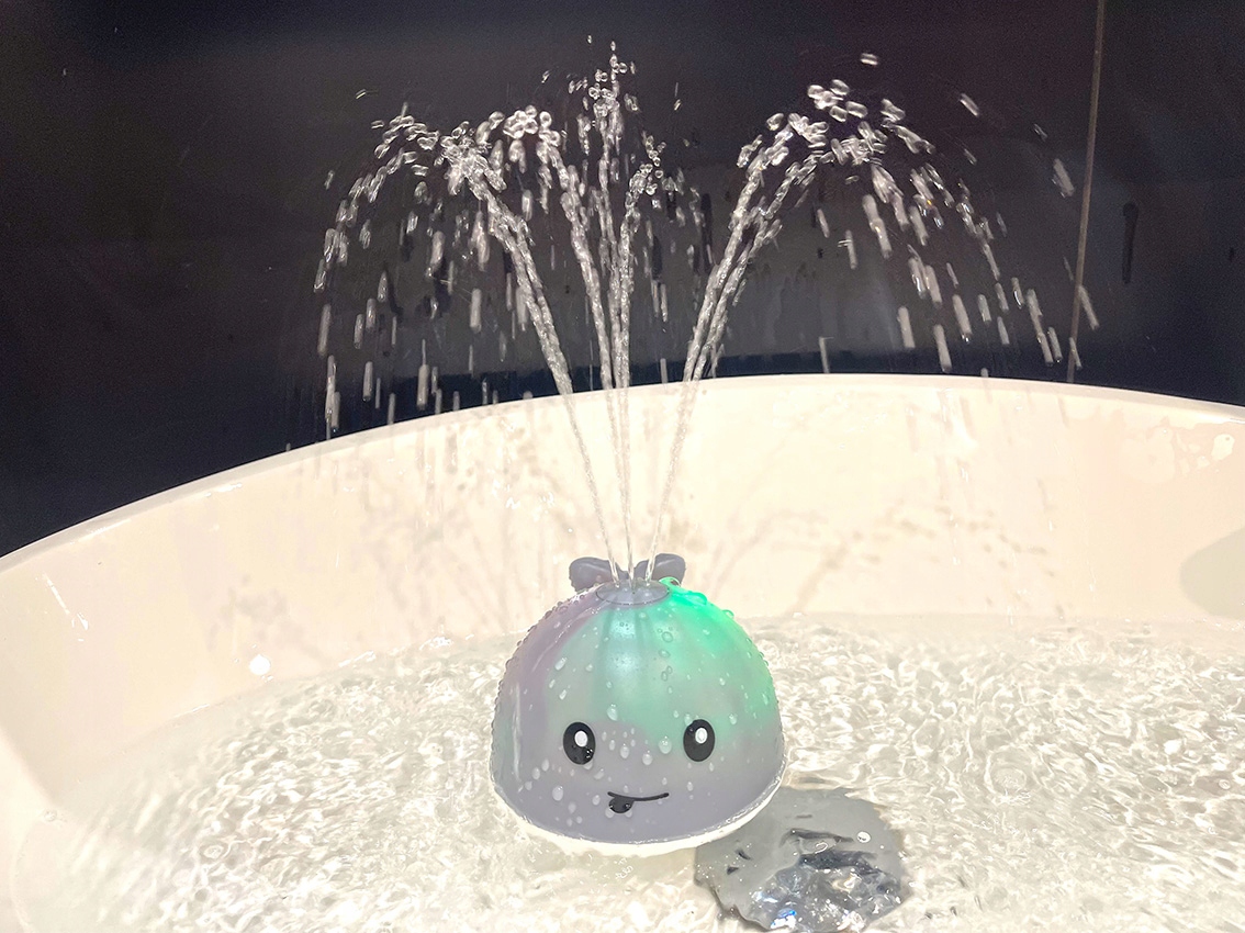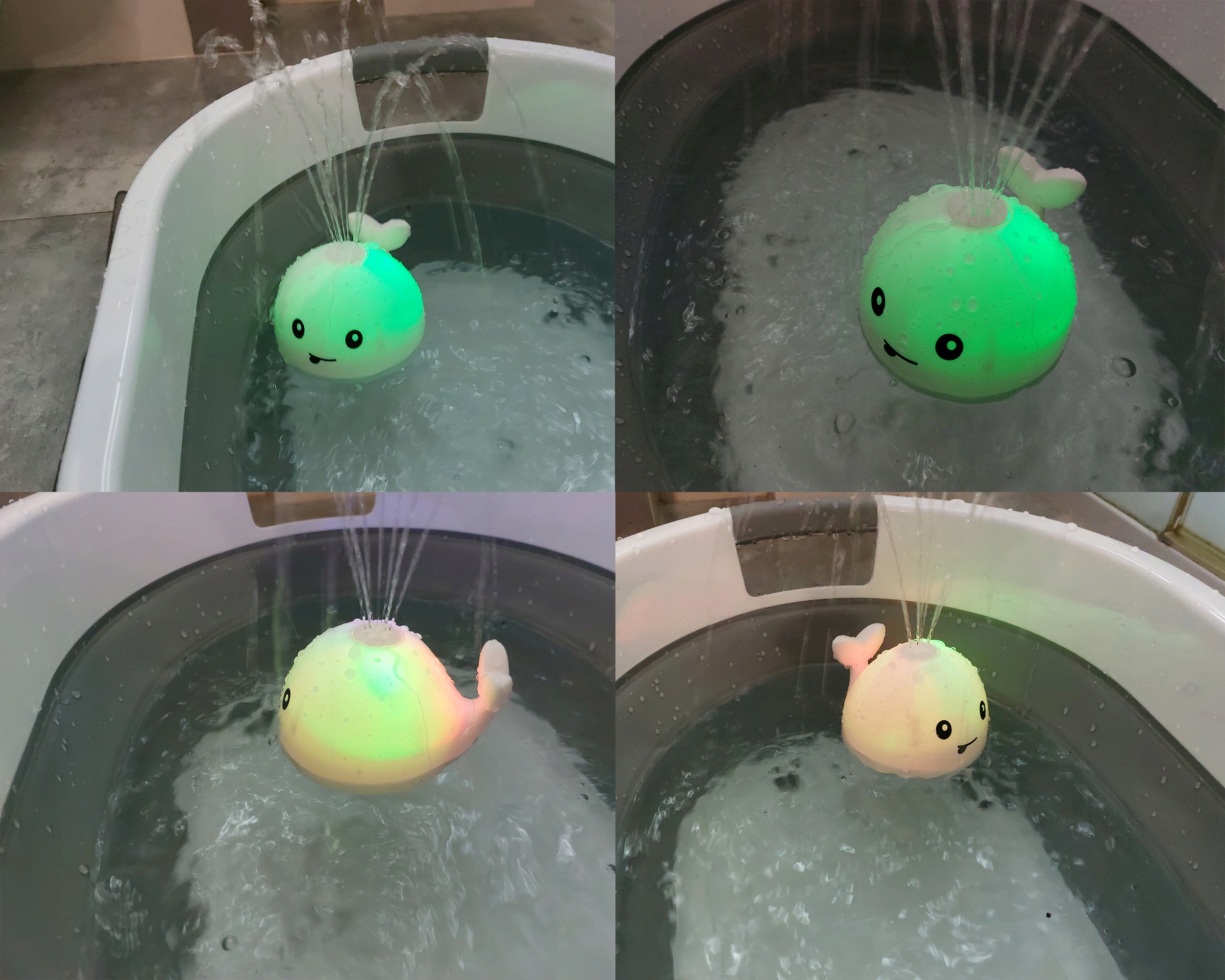 Кит, що світиться, із водою, яка бризкає, — ідеальна ідея для оригінальної гри у купання для вашої дитини.
