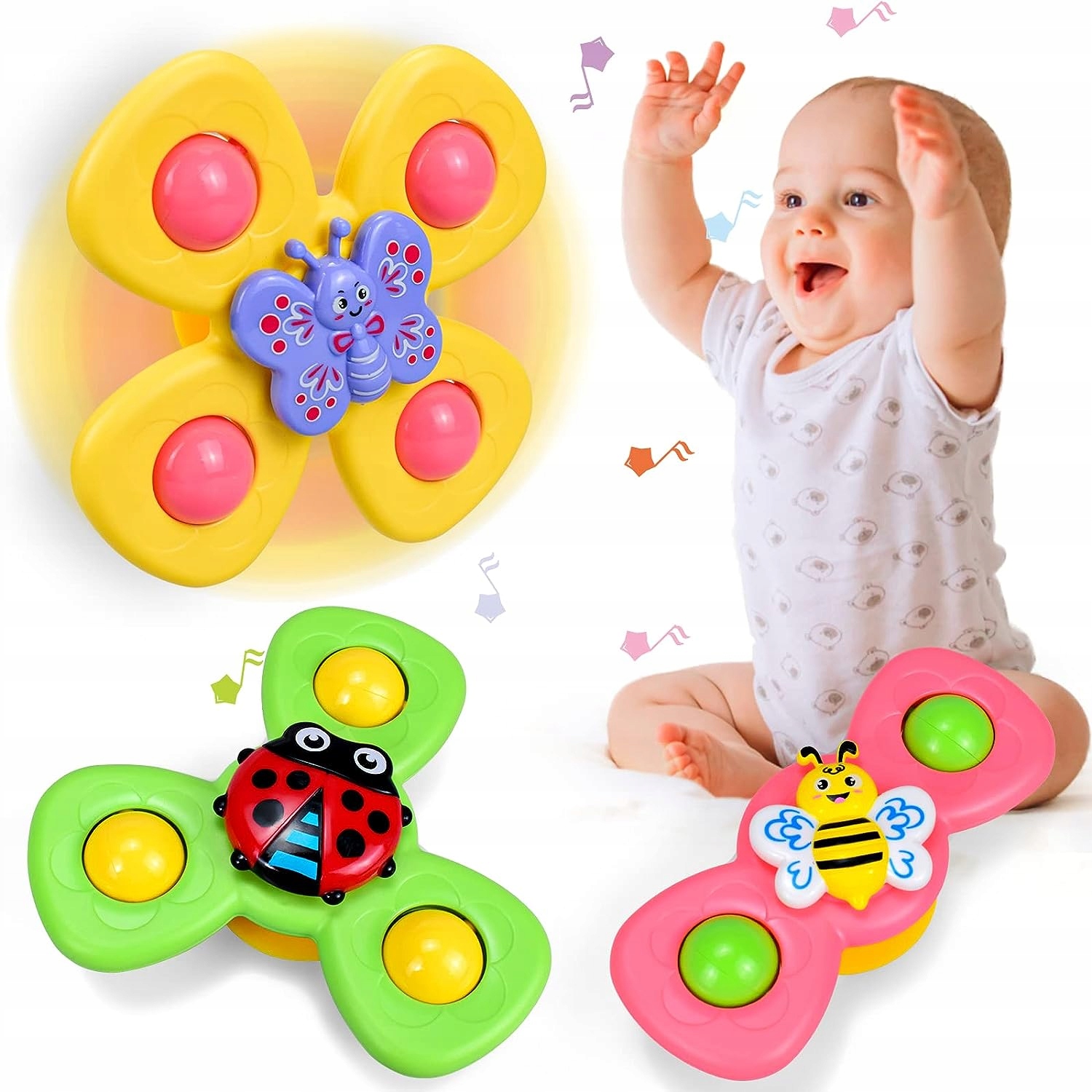 - Яскраві та ніжні звуки під час повороту, яскраві кольори, щоб привернути погляд дитини. Іграшки, що обертаються з присоскою, підходять для немовлят віком 6-12 місяців, які можуть розвивати зір, дотик і слух.