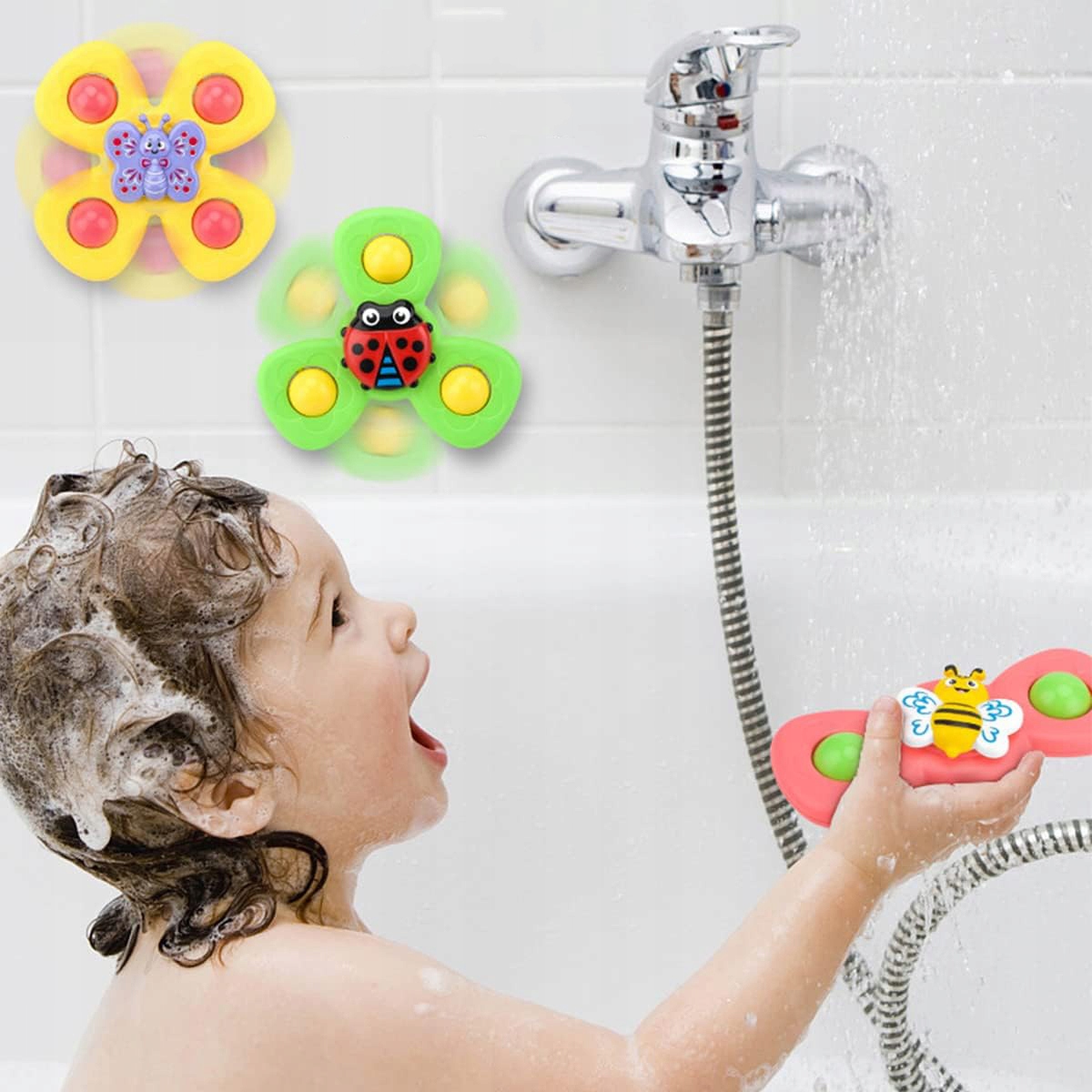 🦋 Розвиваючі іграшки для дітей: 3 різні іграшки крутяться у ванні у формі тварин, бджілки, метелики, сонечка. Дитина може торкатися, щипати, обертати та дивитися на сенсорні іграшки для купання, що добре для покращення координації рук, очей та мозку дитини.