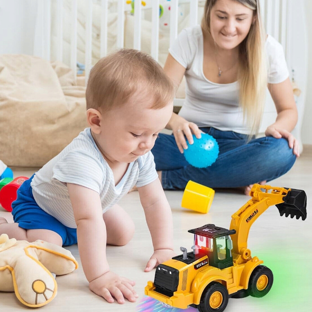 - -Після певного часу руху екскаватор тимчасово зупиниться та перемістить копальну руку вгору та вниз, щоб імітувати земляні роботи. Діти можуть виступати в ролі архітекторів і грати зі своїми друзями. (Примітка: важіль екскаватора не можна регулювати вручну, це автоматична електронна іграшка).