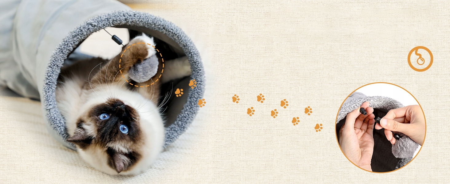 Іграшка S-подібний тунель для котів, складний, замшевий, великий тунель для домашніх котів і кроликів, на 2 отвори та підвісну кульку, діаметр 27*117 см