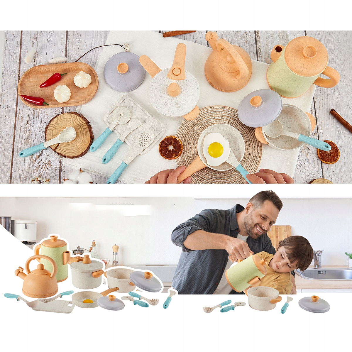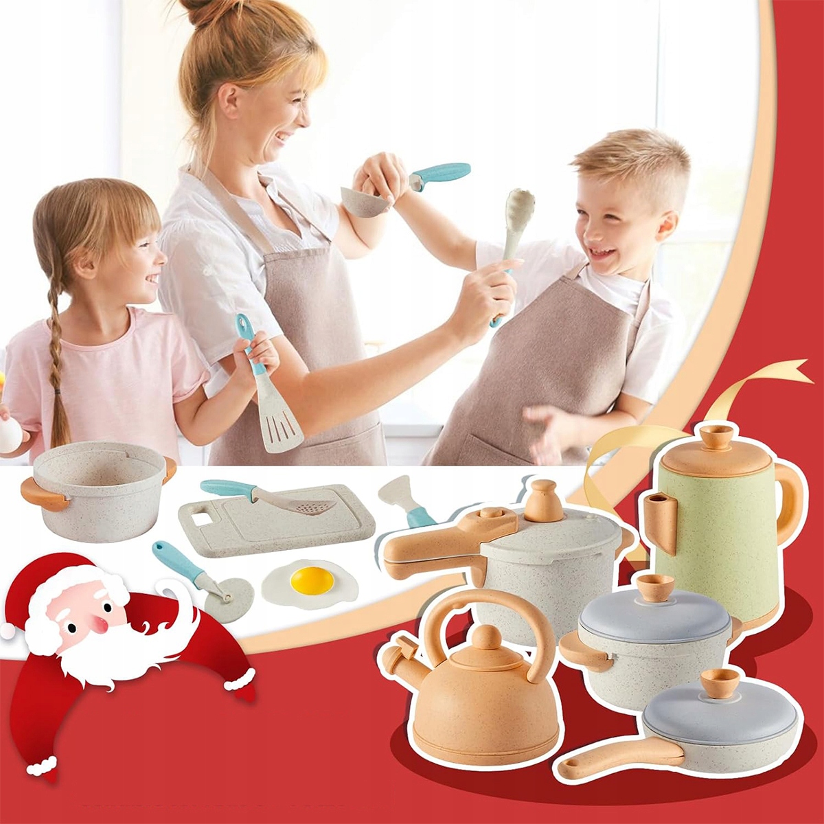 ⭐️Набір кухонних аксесуарів для дітей, що складається з 13 елементів: кухонне начиння, в тому числі скороварки, каструлі, сковорідки, чайник, чайник зі свистком, 6 кухонних приладів, обробна дошка і яєчня. Повний набір кухонних каструль для дітей.
