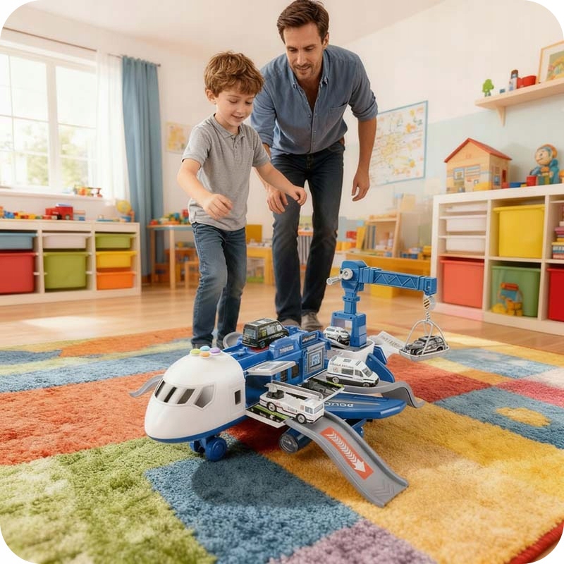 Цей набір — не лише літак, це ще й мобільна поліцейська станція! Діти можуть розігрувати різні сценарії, від рятувальних операцій до погонь, навчаючись логічного мислення, рухової координації та швидкого прийняття рішень.