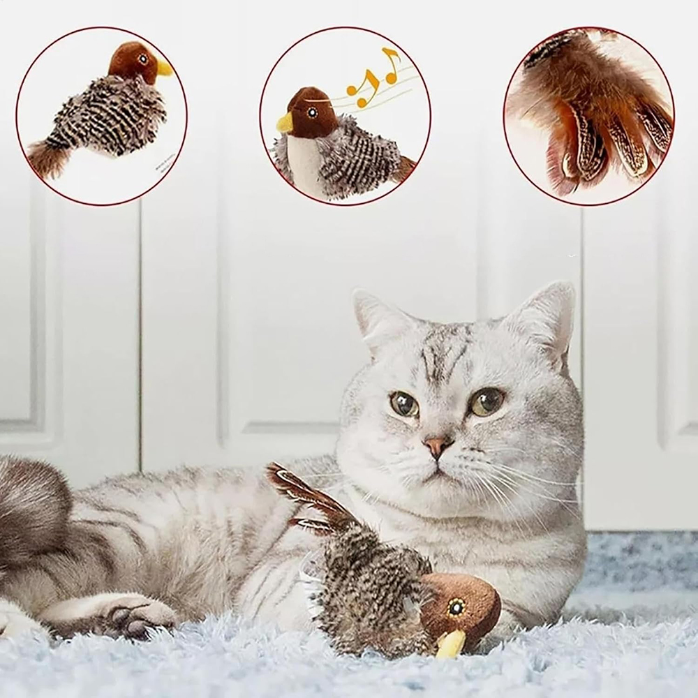 помахи крилами та тріпотливі рухи іграшок у формі птахів стимулюють вроджений мисливський інстинкт кота, заохочуючи його атакувати та бити. Це забезпечує нескінченні розваги, одночасно покращуючи спритність тварини.