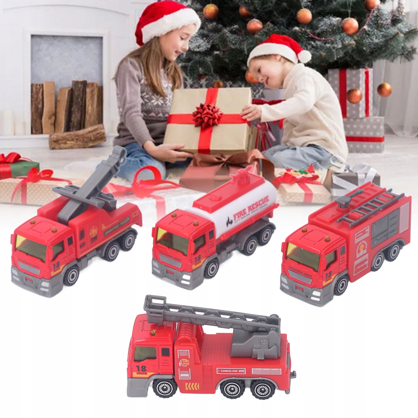 4pcs 1:32 Fire Truck Toy Set High Simulation Pull Back Car Toy Навчальна модель вантажівки Подарунок для дітей