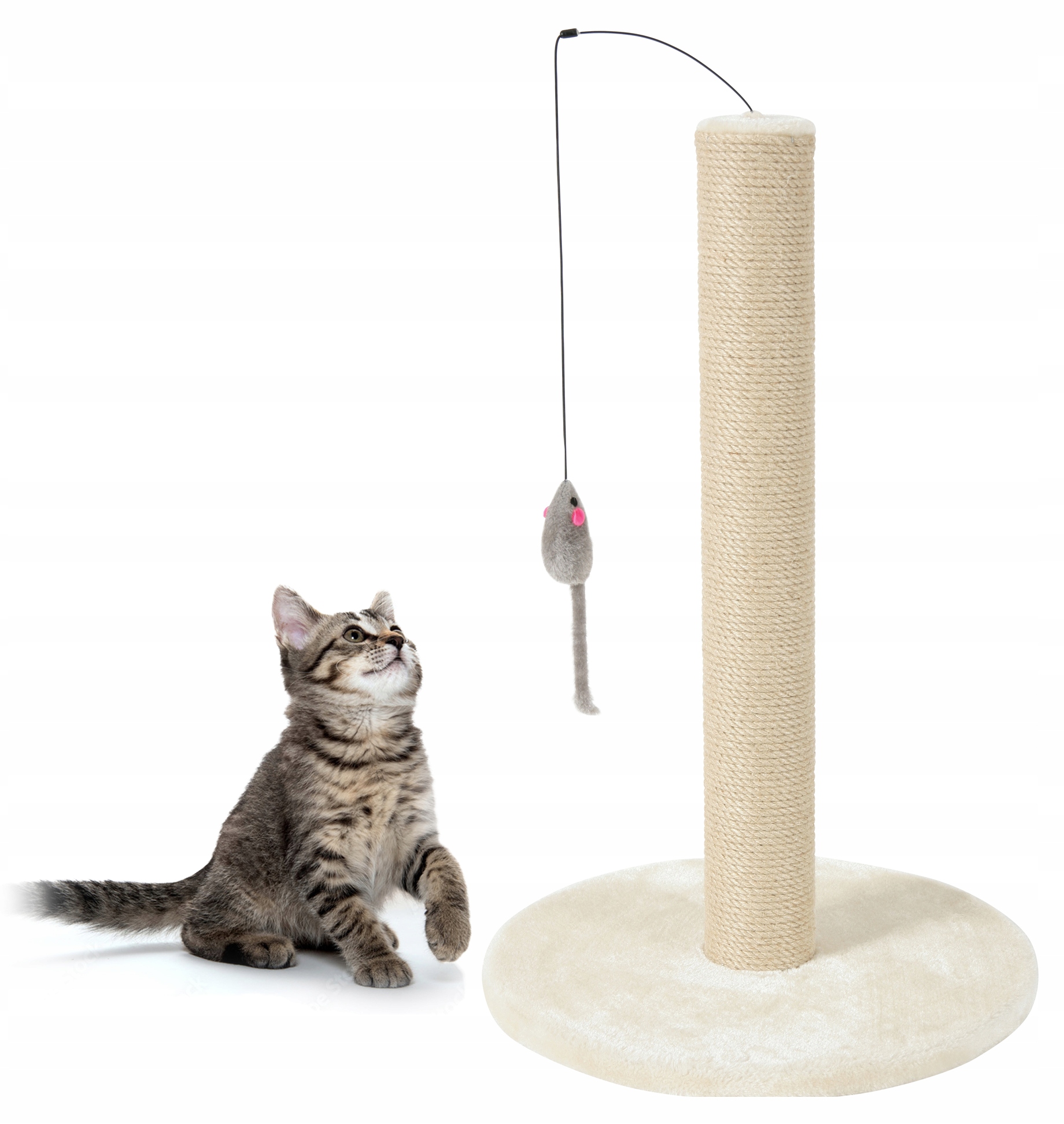 Дряпка - це розвага для котів різного віку. Дозволяє задовольнити природну потребу дряпати та точити кігті. Це забезпечить вашому коту години розваг завдяки висячій мишці. Стовп покритий міцною та довговічною мотузкою. Основа дряпки покрита м'яким, приємним на дотик плюшем.