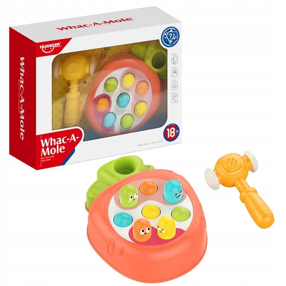 Іграшка-молоток передбачає удари по черв’яку, що стирчить. Як тільки ви націлитеся, він сховається, а наступний вискочить, і вам потрібно влучити в нього. Іграшка підтримує око-руковий процес і координацію рухів дитини.