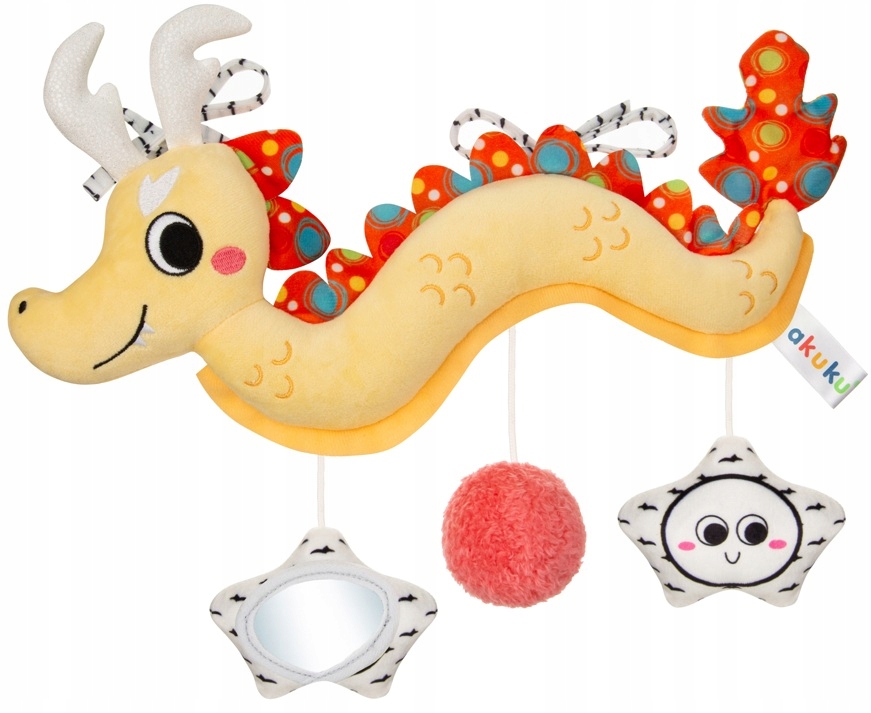 Сенсорна іграшка для малюків - Дракон Акукуз дзеркальцем і брязкальцем
