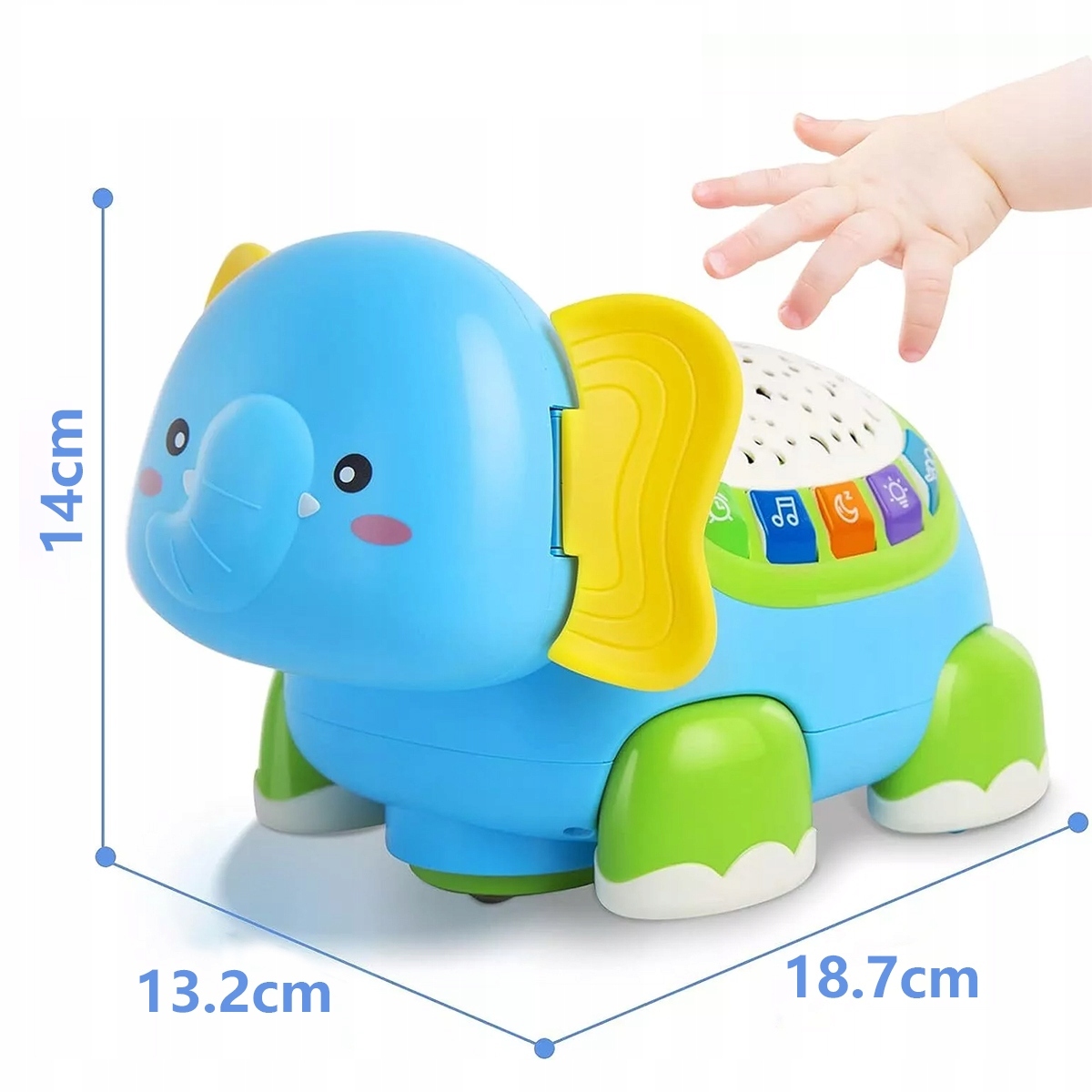 【Заохочуйте дитину повзати】 Коли ви натискаєте кнопку повзання, іграшка спочатку видає реалістичний звук слона, а потім слоник із тріпотливими вухами починає повзати з веселим звуком. музика. Світиться хвіст спонукає малюка повзати. Малюк намагатиметься зловити слоненя, сприяючи розвитку дрібної моторики та координації рук і очей.