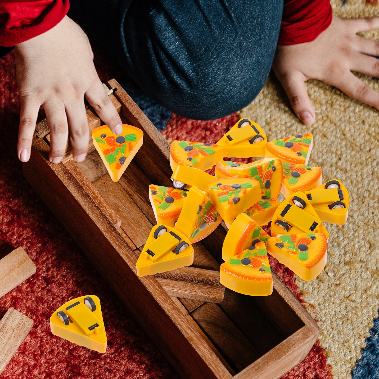 Ця іграшка Pizza Pull Back може розвивати когнітивні здібності дітей і покращувати їх здатність до дій.