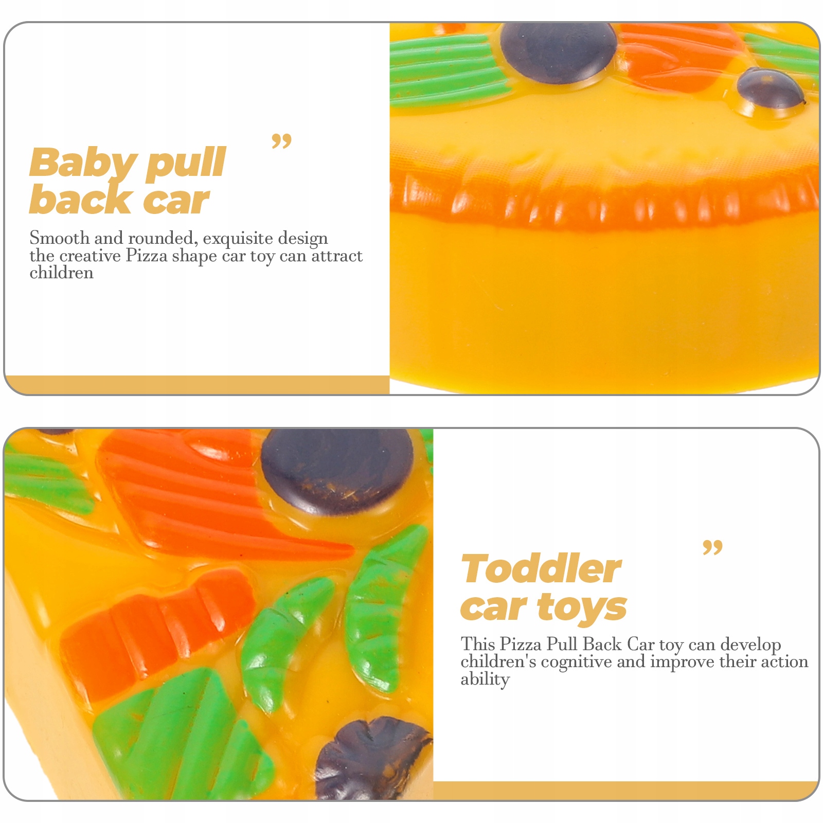 Гладка і округла, вишуканий дизайн, креативна іграшка-машина у формі піци може привабити дітей.