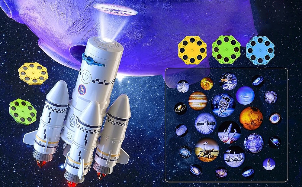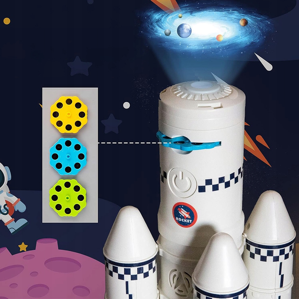 🚀 【Ракета з лампою для проектора】: Ця суперкрута ракета також є міні-проектором. Слайд-шоу поділено на три теми: космос, галактика та планета, загалом 24 фотографії. Ви можете вручну повернути прокручування, щоб переглянути наступний слайд. Прикріпіть лінзу до ракети-носія, вставте диск, і ваші діти зможуть вивчати астрономію та відкривати таємниці Всесвіту, не виходячи зі своєї вітальні, спальні чи класу!