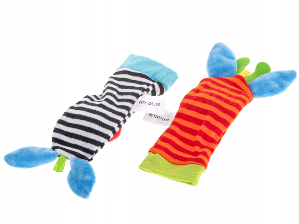 барвисті шкарпетки для тварин - це чудовий спосіб ввести дитину у світ сенсорних відкриттів . м'який матеріал і злегка гнучка обробка забезпечують зручність носіння , інтенсивні кольори та контрастні візерунки стимулюють зір. Приховані в шкарпетках брязкальців привертають увагу звуком під час руху ніг, мотивуючи дитину бути активними та зміцнювати м’язи . Ідеально підходить для повсякденних розваг та перших моторних вправ .