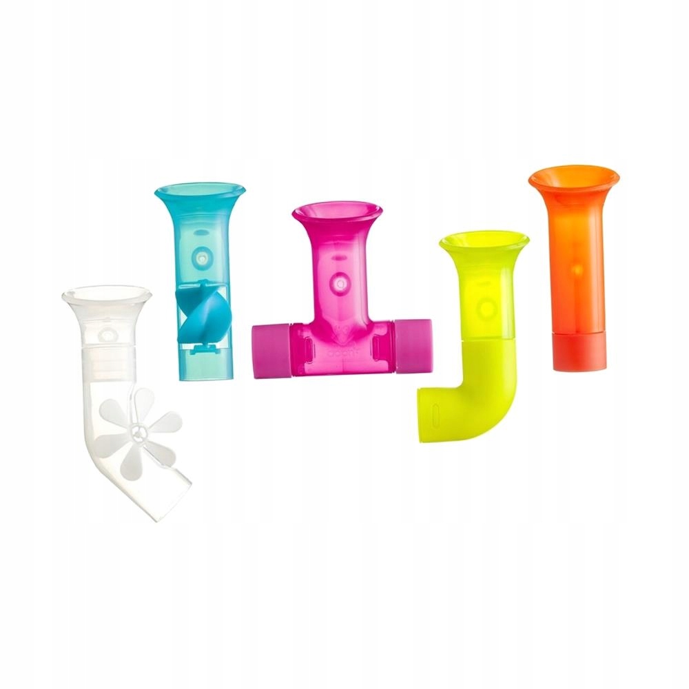 І хто б міг подумати, що діряві труби можуть бути такими кумедними, але наші роблять купання справжнім задоволенням, ми ллємо і ллємо нескінченно. Труби мають п’ять форм, які можна використовувати окремо або разом, щоб утворити ланцюжок. Завдяки присоскам, прикріпленим до стіни, вода тече назад у ванну, а не на підлогу. Маленькі сантехніки, готуйтеся до роботи.