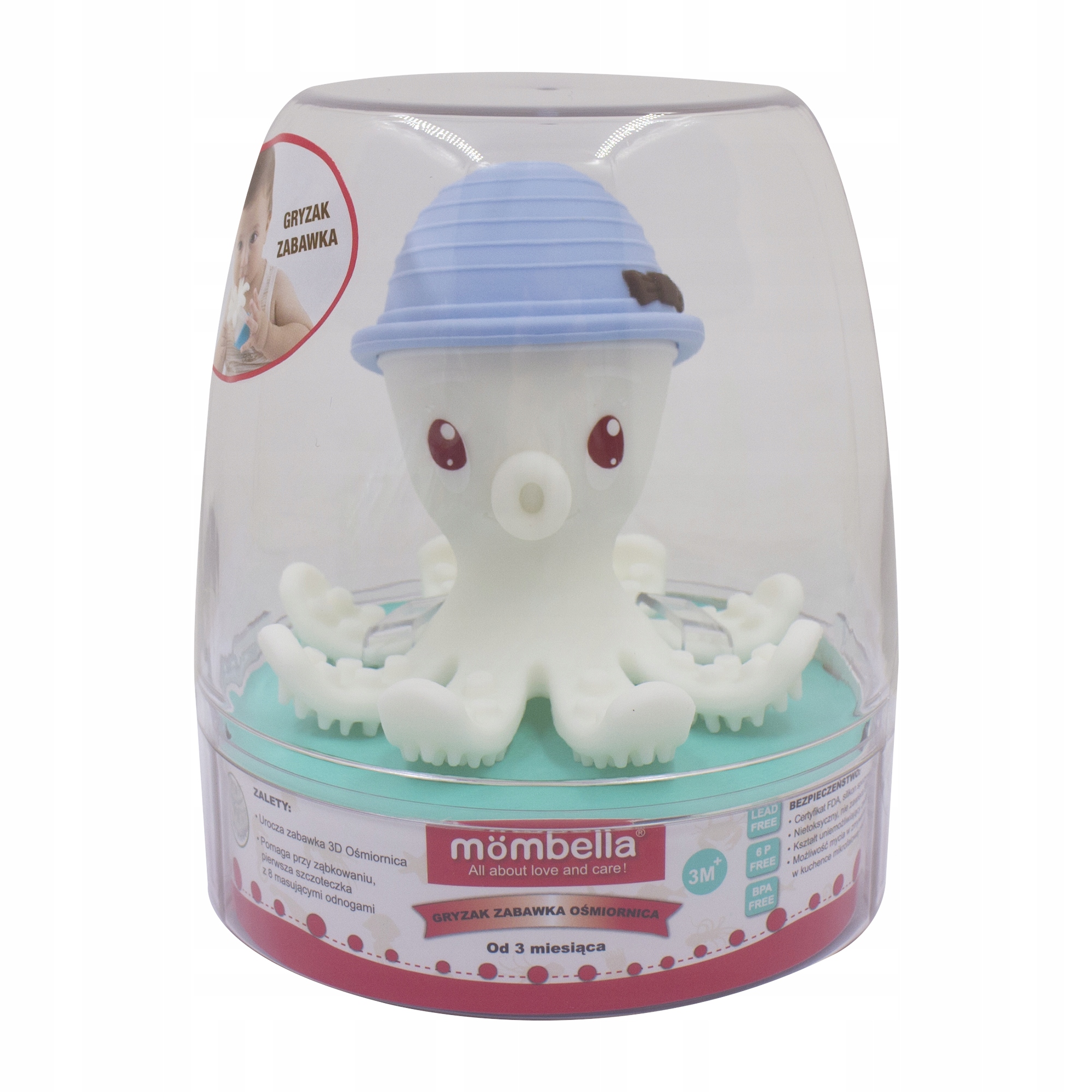 3D силіконовий прорізувач, розроблений для того, щоб дитина не вдавилася. Чарівний восьминіг може стати вашим улюбленим другом для прорізування зубів. Його дизайн надає вашій дитині багато можливостей для гри. Гладку поверхню можна використовувати для смоктання, а можна зробити з неї кульку. Вісім щупалець з виступами послужать і прорізувачем, і зубною щіткою. Відповідна форма і розмір дозволяють дитині легко її схопити. Ви можете використовувати його в посудомийній машині, мікрохвильовій печі та морозильній камері. Восьминіг, упакований в прозору жорстку упаковку, стане чудовим подарунком.