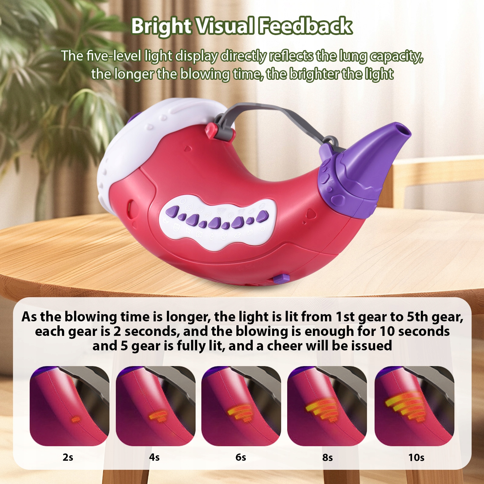 5. Яскравий візуальний зворотний зв'язок: Завдяки п'ятирівневому дисплею підсвічування свистки ріжка іграшки візуально відображають тривалість дмухання. Коли діти грають довше, світло поступово стає яскравішим, додаючи захоплюючий візуальний елемент, який покращує загальну гру та мотивує їх продовжувати гру.