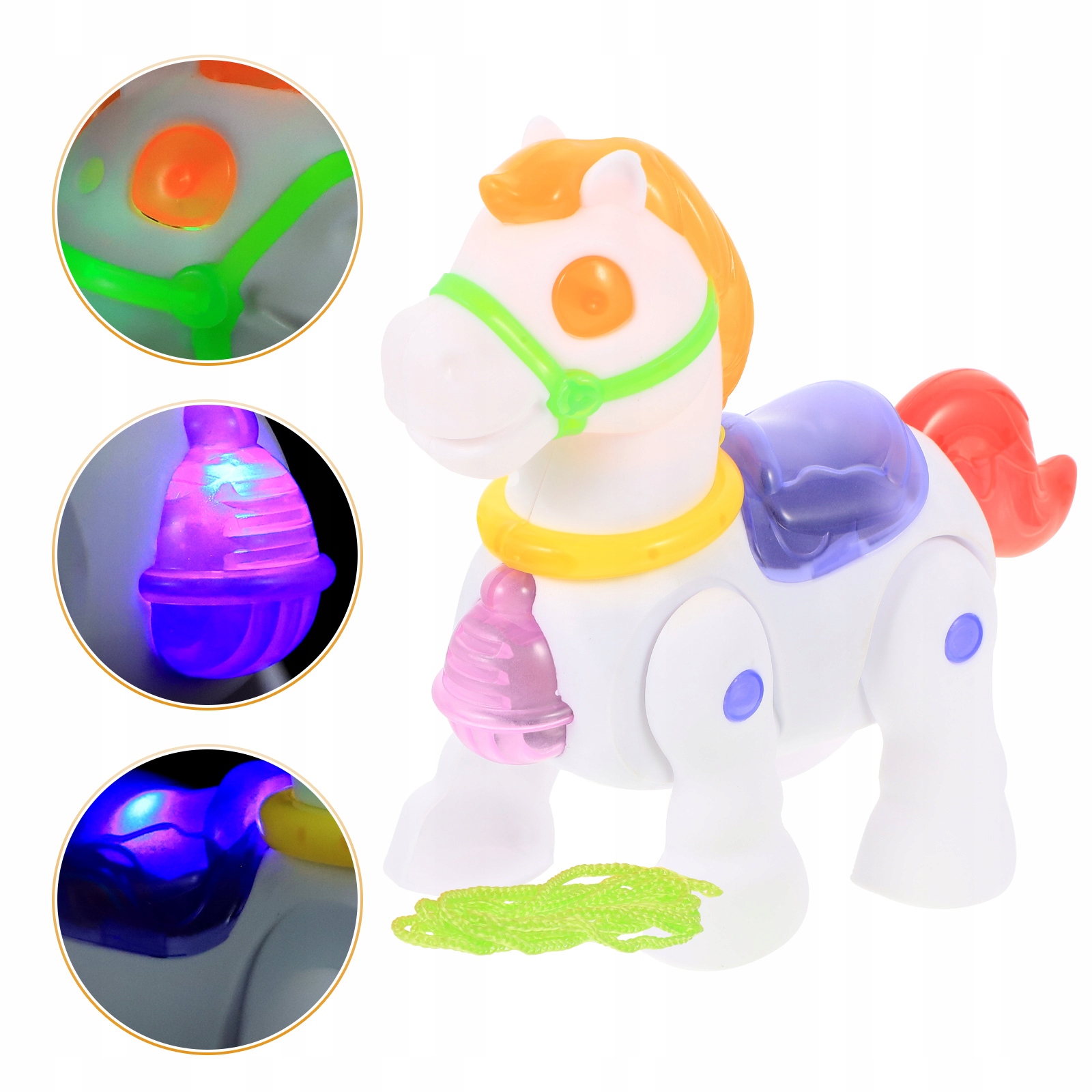 Дзвіночок, хвіст і спина нашого поні випромінюють різнокольорові вогні, ефект нічного відкриття очевидний, вогні змінюватимуться в ритмі миготливої музики.