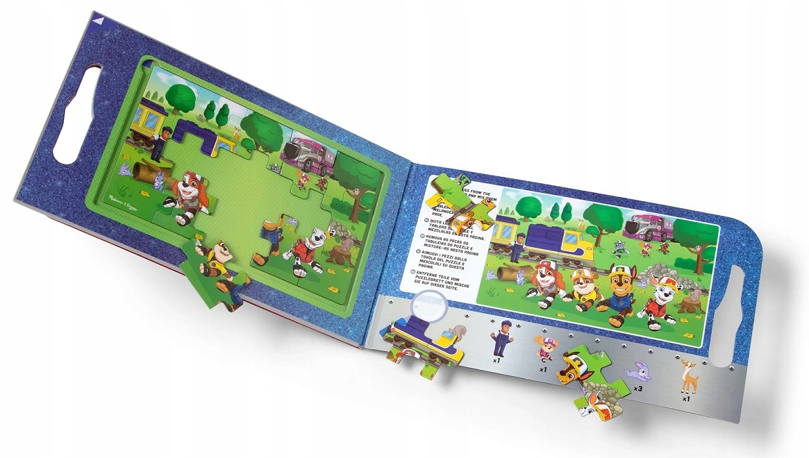 Чи є у вас маленький шанувальник собачий патруль вдома ?? Якщо так, у нас є щось чудове для нього: D Красиві головоломки від добре відомого виробника іграшок Меліси та Дуга. Це не звичайні головоломки в коробці, а магнітний буклет, який містить до 2 картин. На одній сторінці є шаблон зображення, під ним ми знайдемо список деталей, які слід знайти при закладанні головоломки. Звичайно, є головоломки з призначеним місцем для прокладки.