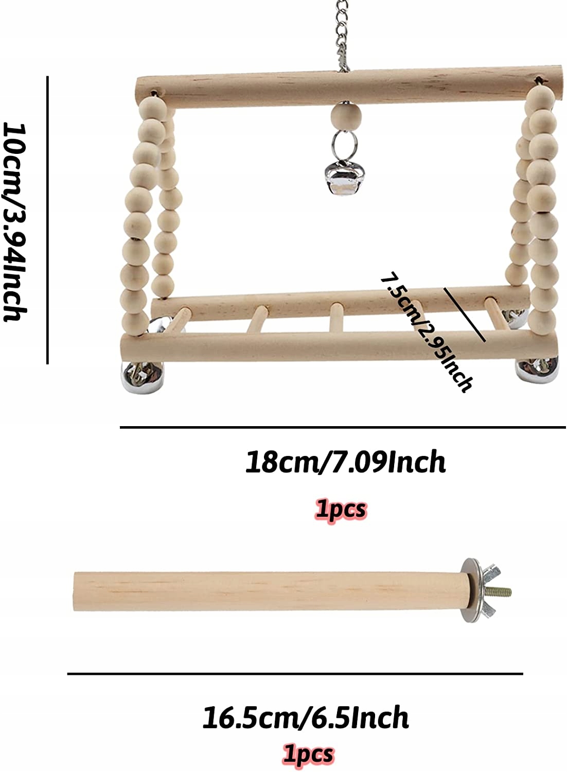 Яскраві дерев'яні іграшки та гострі дзвіночки можуть привернути увагу домашніх птахів, придатні для лазіння папуг, спорту, ігор, жування, відпочинку.
