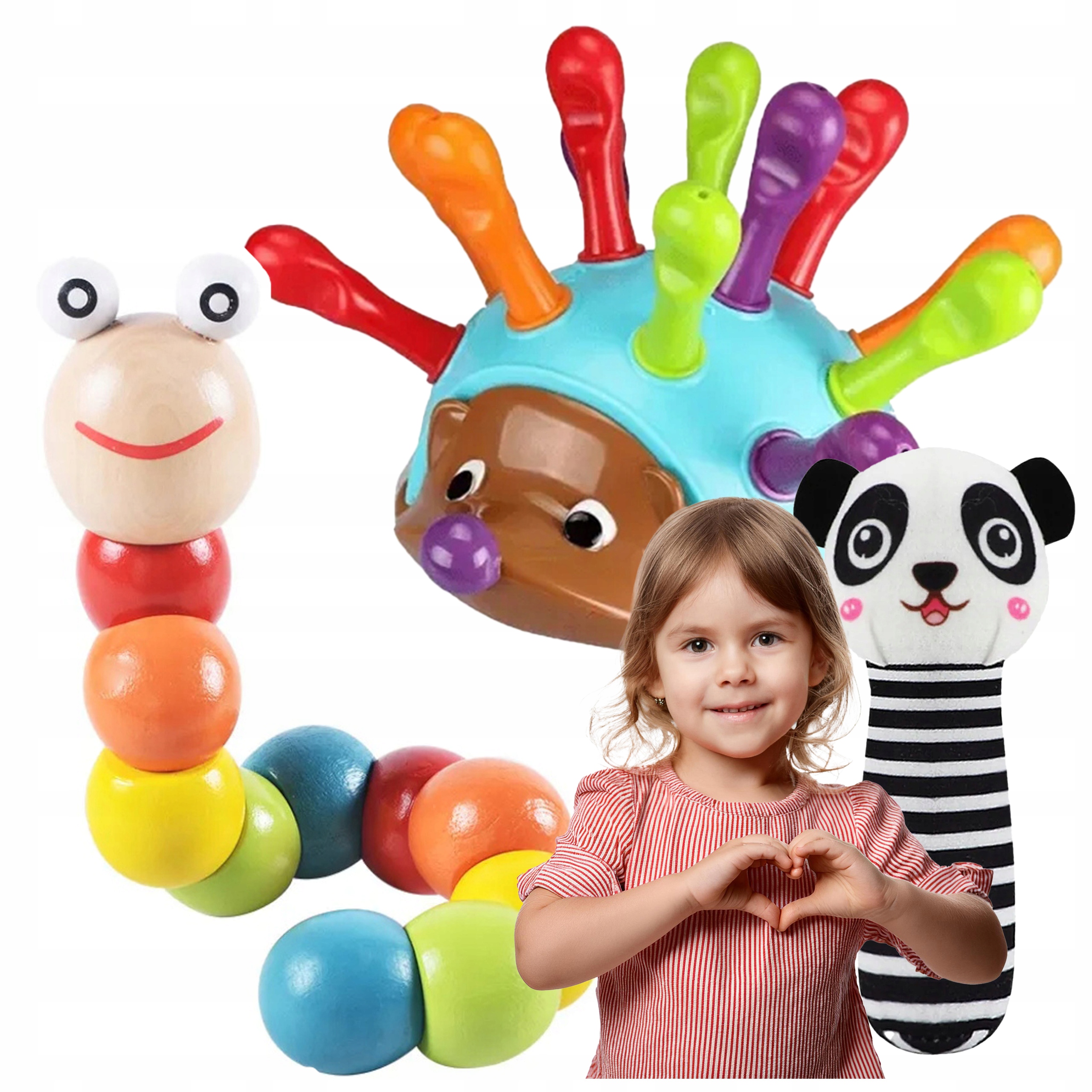 барвиста гусениця на гнучкій струні, яку дитина може зігнути і скрутити, розвиваючи свої ручні здібності .