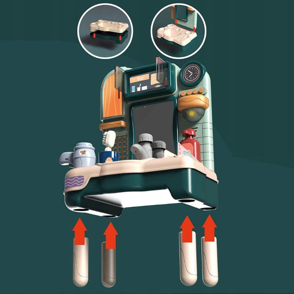 Навчальні іграшки: набір іграшок для мийки містить простір для зберігання та багатофункціональну музичну скриньку, яка може розвивати практичні навички дітей.