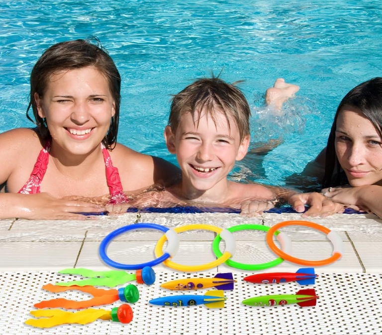 Наші іграшки для басейну — це не лише чудова розвага, але й набір для дайвінгу та риболовлі, який розвиває навички у воді та забезпечує безпечні розваги для дітей і дорослих.