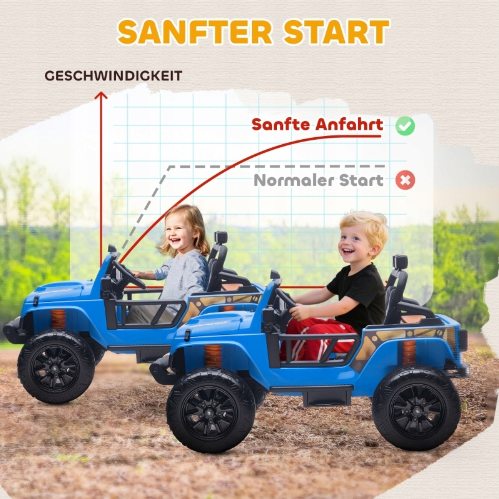 Безпечна подорож, веселі розваги: цей електромобіль для дітей оснащено системою плавного запуску та ременями безпеки для тихої та безпечної їзди. Подвійні двигуни та незалежна підвіска легко справляються з трав’яними поверхнями для комфортної їзди.