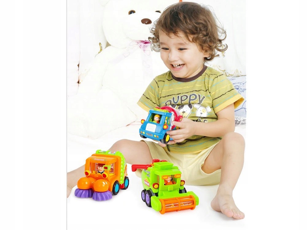 Машинки не потребують батарейок, вони рухаються за допомогою натягу, вбудованого в іграшку. Завдяки таким транспортним засобам малюк буде швидше повзати.