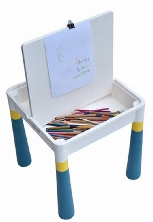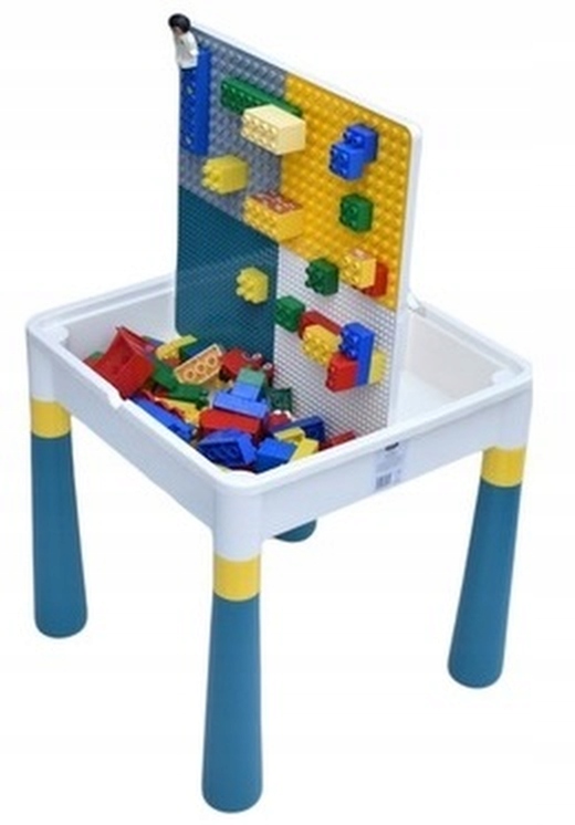 Стільниця є одночасно основою для кубиків і стільницею для малювання та ігор, з боків є контейнери для кубиків, іграшок та інших необхідних речей вашій дитині.