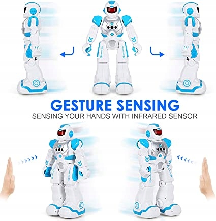 - 【Робот із дистанційним керуванням і керуванням жестами】. Роботи з дистанційним керуванням для хлопчиків і дівчаток для малюків керуються рухом руки або дистанційним керуванням. Розумний робот рухається вперед і назад і повертається вліво і вправо відповідно до ваших жестів або пульта дистанційного керування.