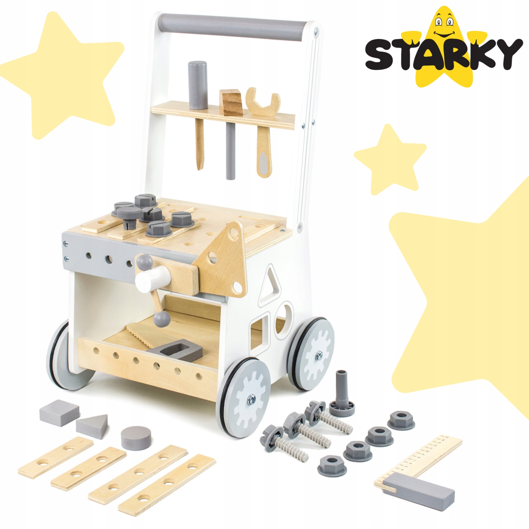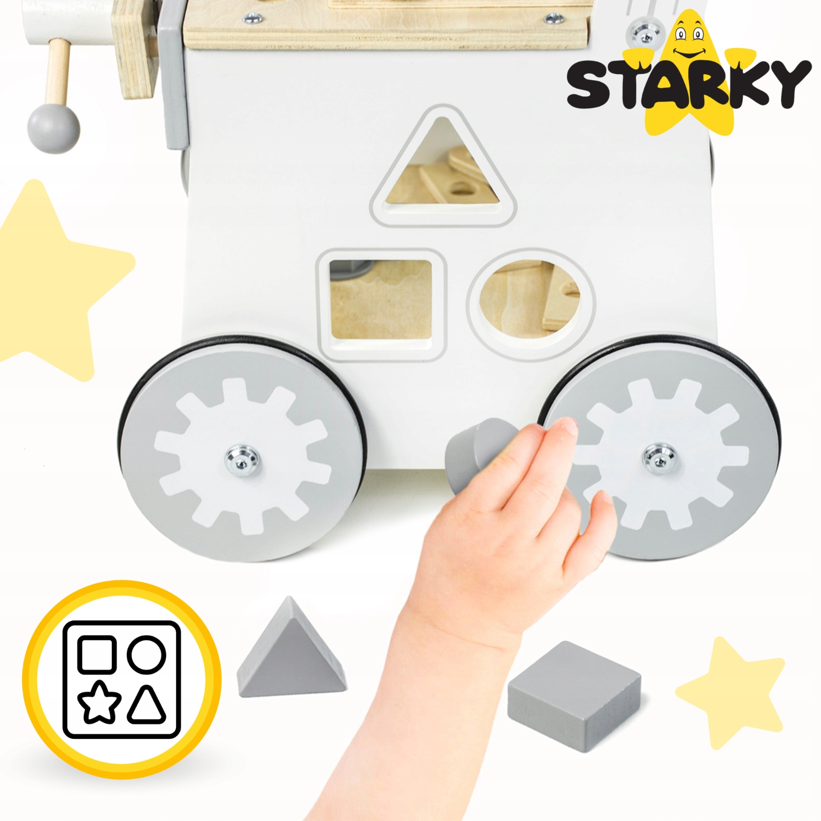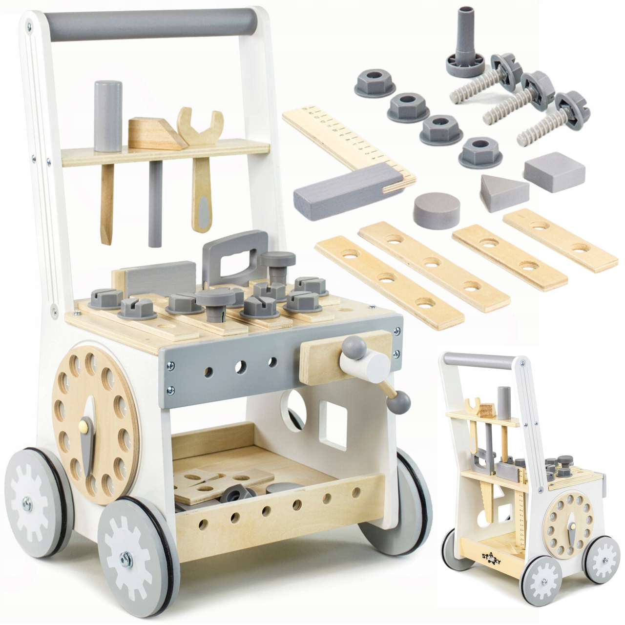 4 Завдяки цій універсальності, малюк має можливість грати по -різному. pusher допоможе вам навчитися ходити та стабілізувати кроки, робоча таблиця пропонує безліч класів, пов’язаних із викручуванням та викручуванням гвинтів, а сортувальника блоків -це освітня забава, яка розробляє логічне мислення та координацію візуального мотора. Набір інструментів - це справжнє частування для маленьких саморобників. Годинник з переміщенням порад вчить малюка розпізнавати години, а VICE додасть справжній робочий елемент для гри!⭐ Ключові переваги продукту