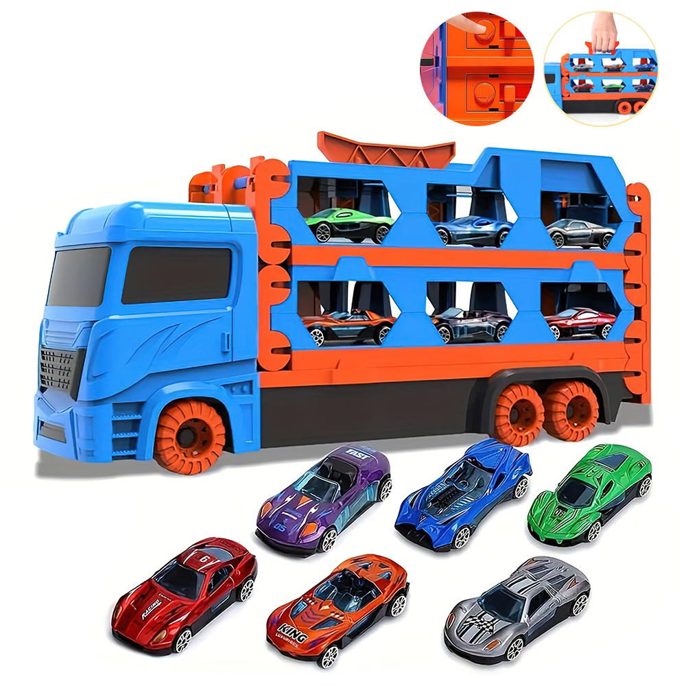 ІГРАШКОВИЙ ТРАНСПОРТ ВАНТАЖІВКА, З 6 ГОНОЧНИМИ МАШИНАМИ, НАБІР ДЛЯ ДІТЕЙ