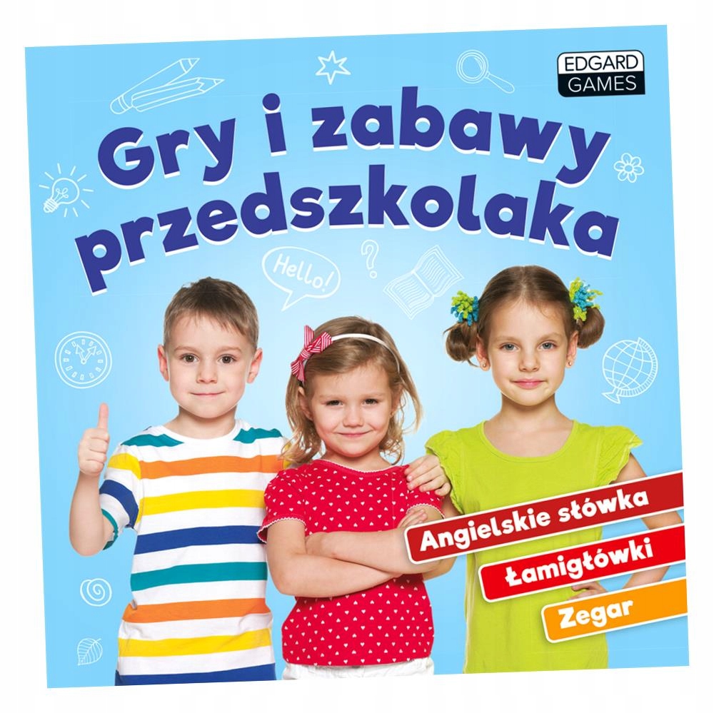 Ігри та заняття для дошкільнят (36 років) - це три ігри, завдяки яким діти вдосконалюють свої математичні та мовні навички, розгадуючи ребуси. Вони тренуватимуть логічне мислення, навчаться розпізнавати час на аналогових і цифрових годинниках, вивчать найважливіші англійські слова. Кожна колода карт пропонує кілька різних варіантів гри. Завдяки їм дошкільнята навчиться відбирати інформацію, знаходити правила в множинах, відгадувати послідовності, рахувати, точно визначати час і який час раніше, а який пізніше, а також вони швидко запам’ятовуватимуть англійську лексику щодо, зокрема, їжі, частин тіла, іграшок або сім’ї.