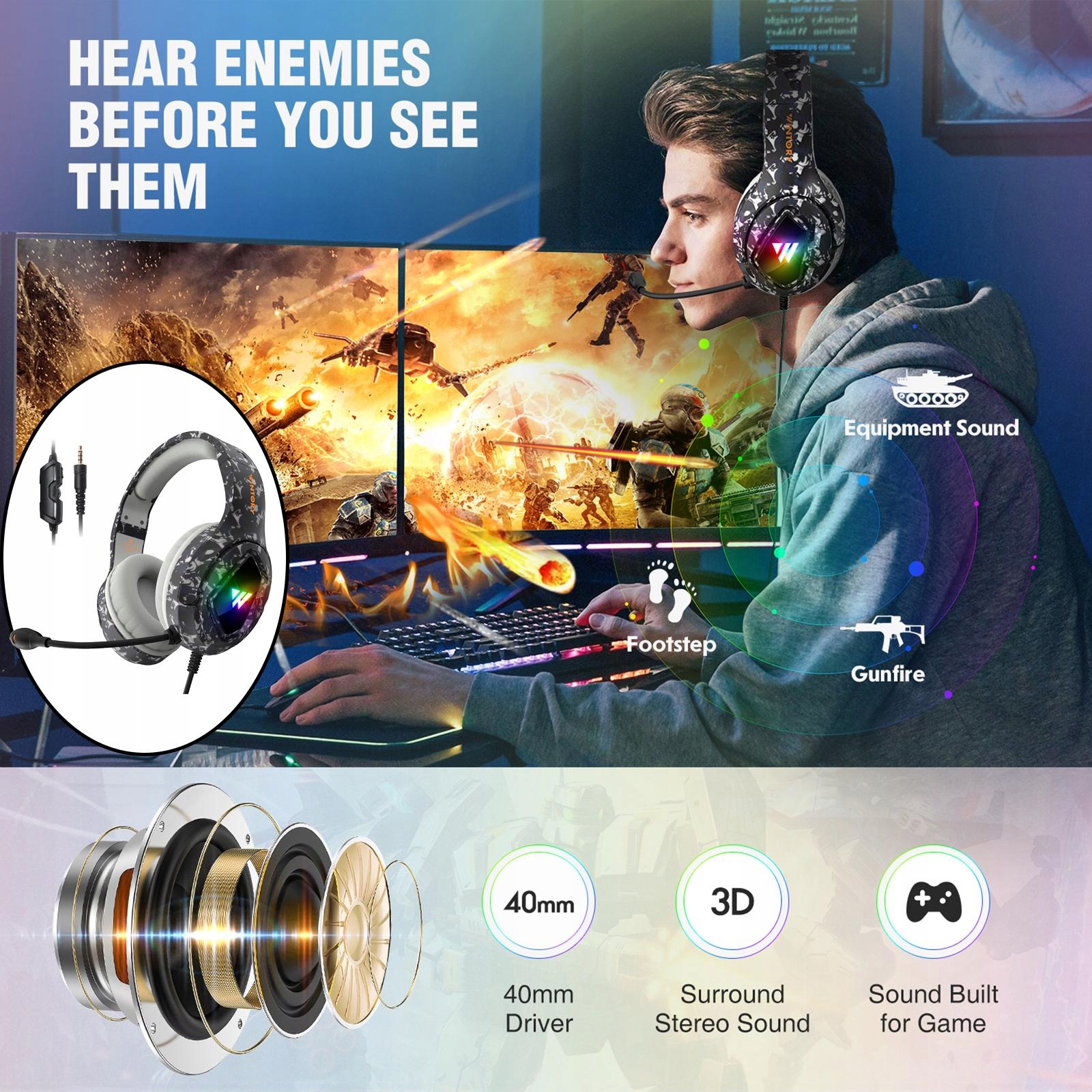 Ігрова гарнітура Almencla RGB з мікрофоном, чорний камуфляж