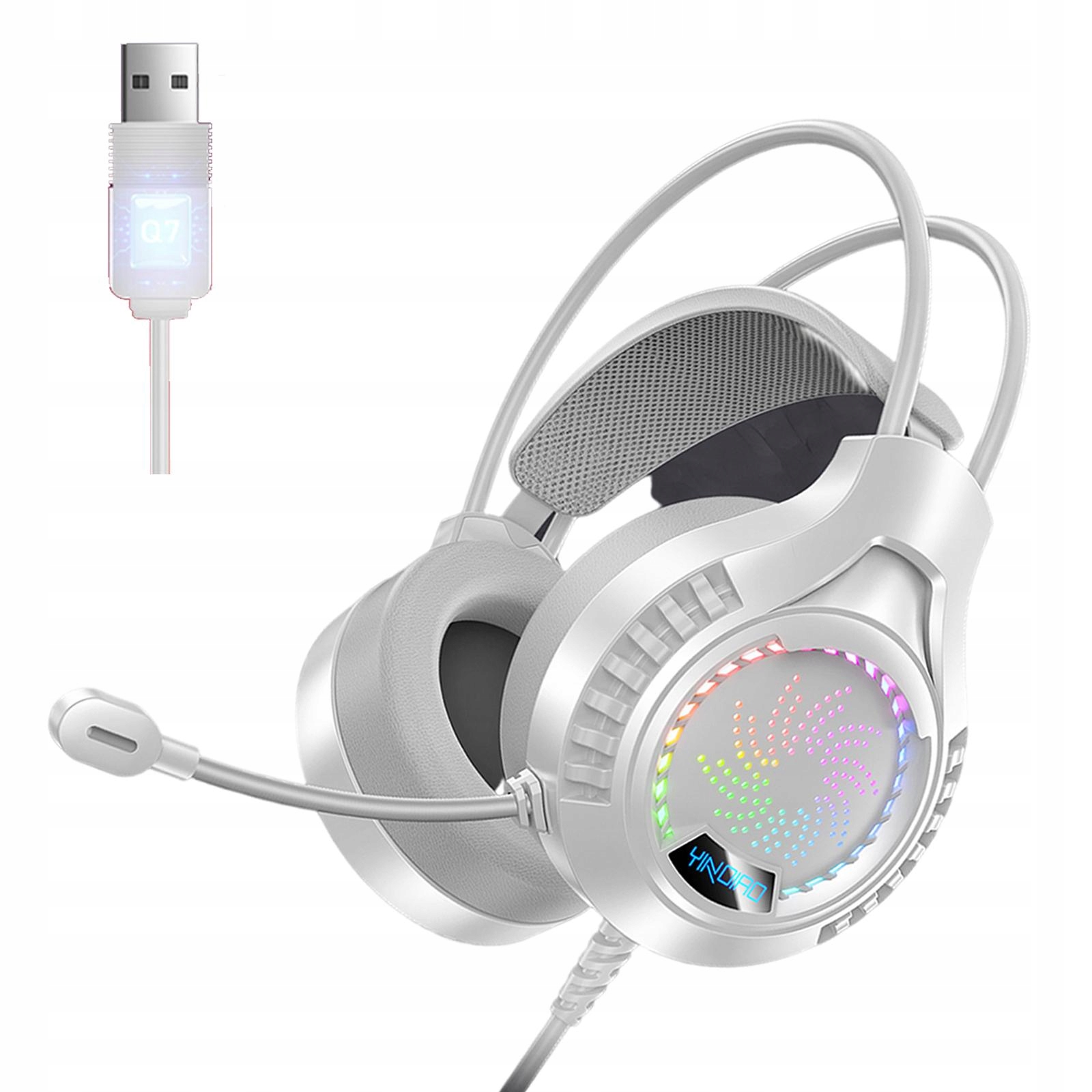 М'які амбушюри ігрової гарнітури з шумопоглинанням і підсвічуванням для офісного телефону USB 7.1 білого кольору