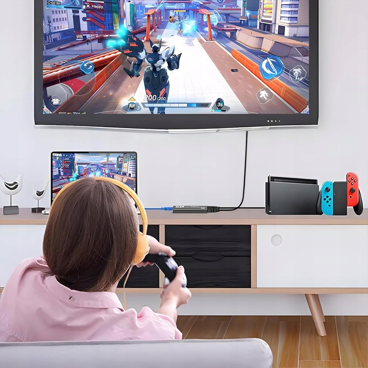 Високоякісний записувач - захоплення зображення через порт HDMI. Він дозволяє записувати відео/аудіосигнал із джерела HDMI (плеєрів, консолей, камер із роз’ємом HDMI, цифрових дзеркальних фотоапаратів, ігрових консолей, а також зображення з іншого комп’ютера на жорсткий диск або транслювати онлайн за допомогою ПК.